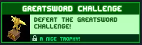 巨剑挑战 击败巨剑挑战! 测试一把本应用双手握持的剑(尽管单手也能拿)有点蠢。使用反射器+火焰,再加上老一套的(喷气背包、敏捷,你懂的)。 奖励:一个不错的奖杯