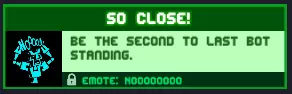 就差一点!成为倒数第二个被淘汰的机器人。当你看到还剩2名玩家时,让自己死于熔岩、陷阱、锯子等危险。奖励:【Noooooooo】表情