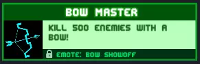 弓术大师:使用弓箭击杀500名敌人! 放心游玩即可,这个成就会自然完成,关键是只使用弓箭或更频繁地使用弓箭。 奖励:【炫耀弓箭】表情