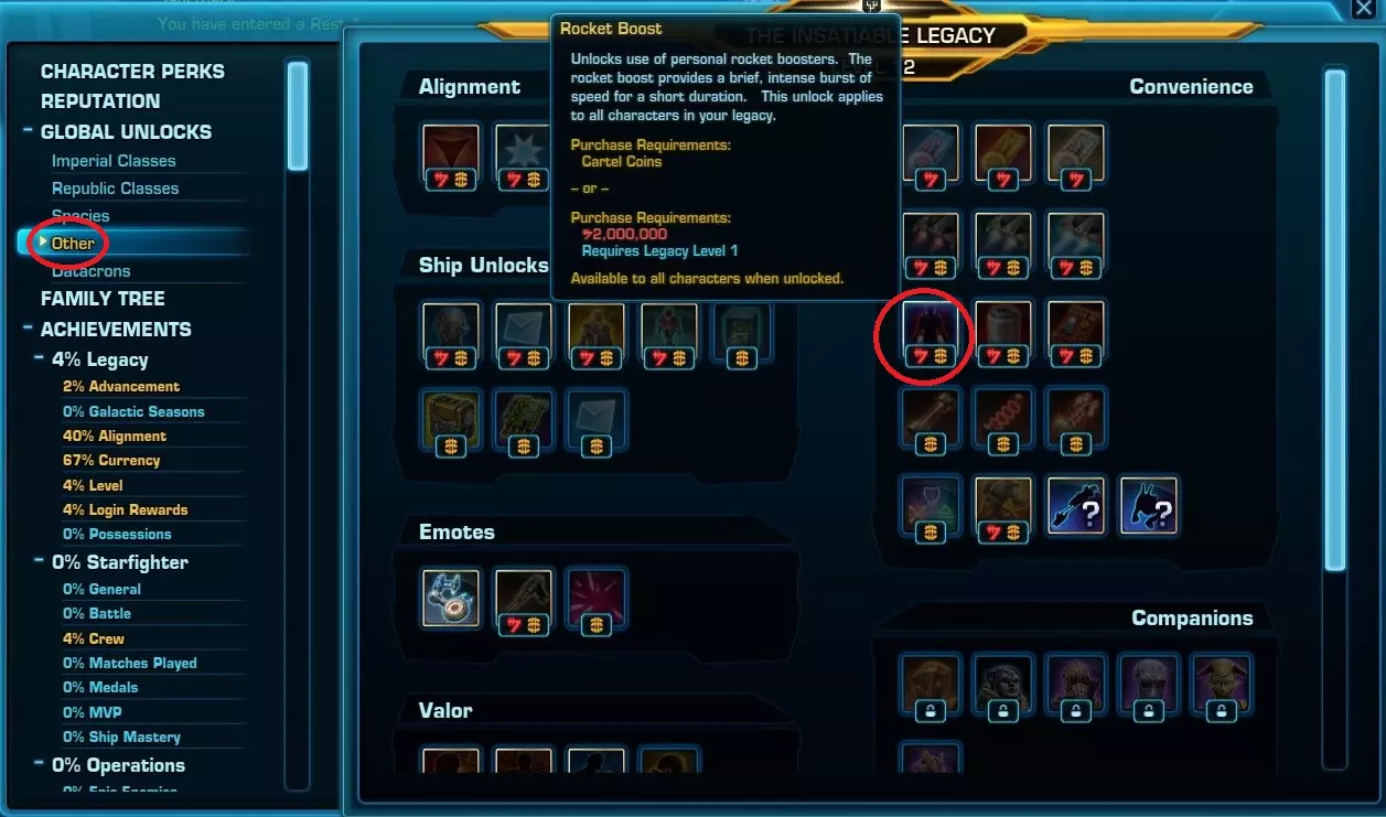 不订阅的话无法购买它,因为它需要200万 credits,而现金上限是100万。订阅后,上限将被解除,您将能够购买它以及《星球大战:旧共和国》中所有价值超过100万的物品等。对了,当游戏提示您创建这个Legacy时不要拖延,这是个有用的功能,可以在您的任何角色上使用,升级进度在底部的经验条那里。更多详情可以从官方来源了解。(内容无法识别,已删除)