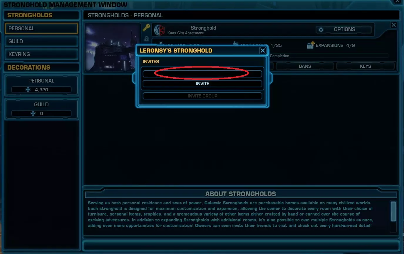要向自己的要塞发送邀请,请点击【INVITES】,然后输入玩家昵称并点击【INVITE】。