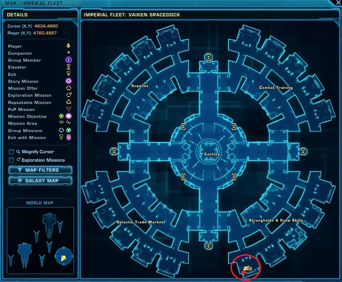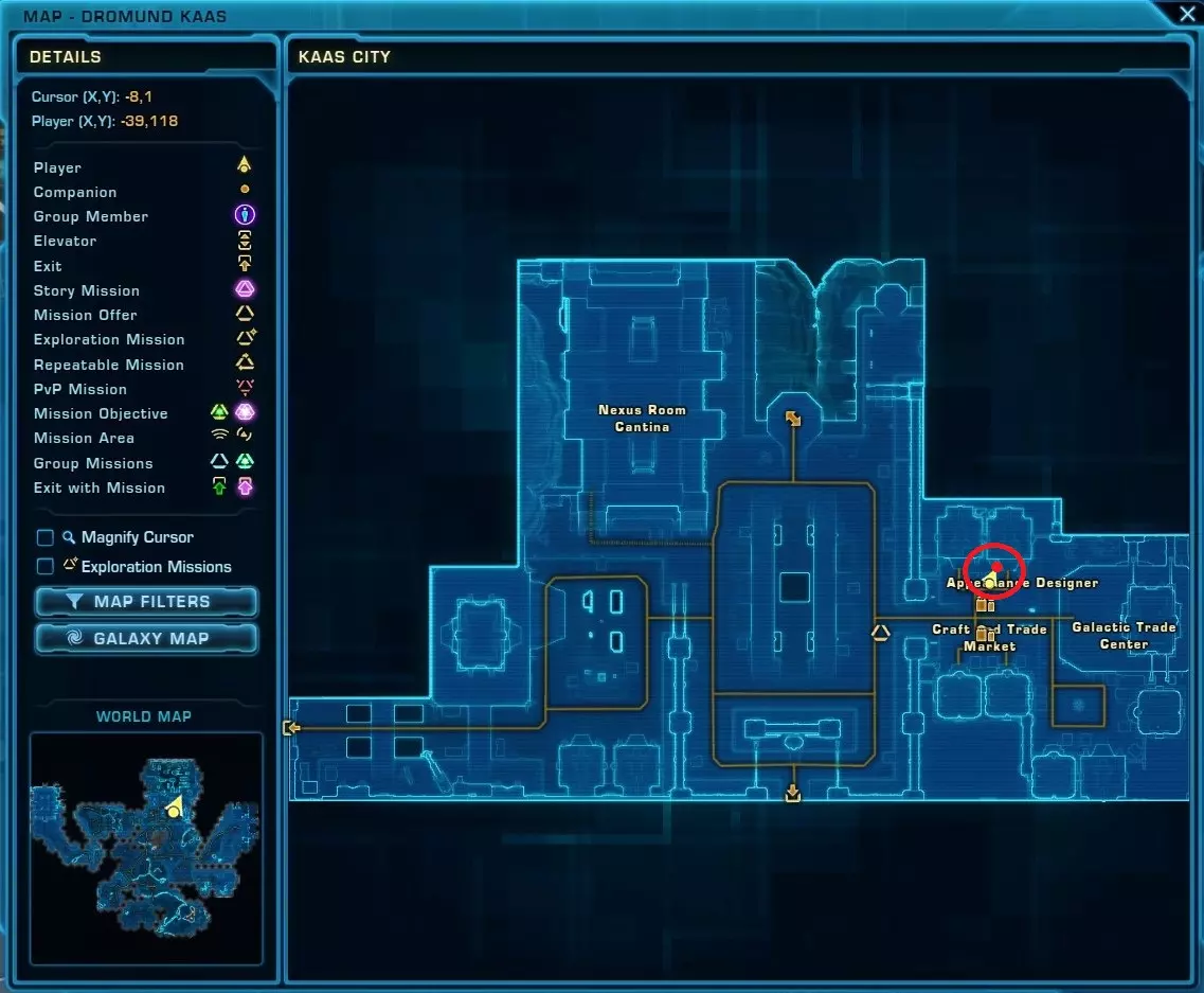 关于共和国势力,我会描述他们的栖息地位置,但不会提供地图。如果您有机会比我先找到并截图他们的栖息地位置,我很乐意接收。 在科洛桑的议会商业区,GTN终端附近(具体终端名称未知)。 在共和国舰队的甜甜圈区域西南部,靠近提供技能的NPC附近。