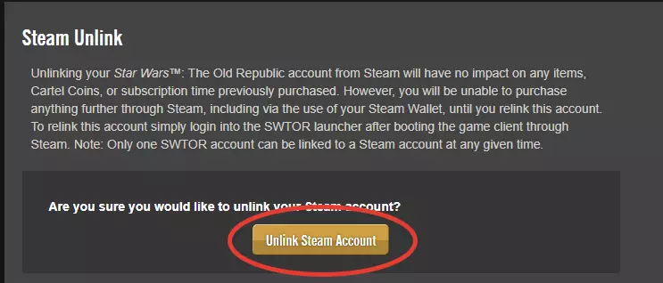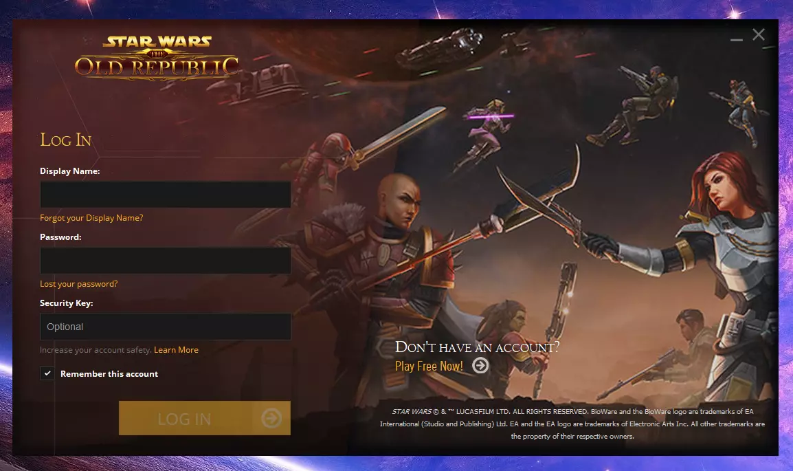 6. 登录您的新Steam账号,启动《星球大战:旧共和国》,输入密码和登录名即可完成。您的新Steam账号会自动与游戏绑定,反之操作也同样可行。