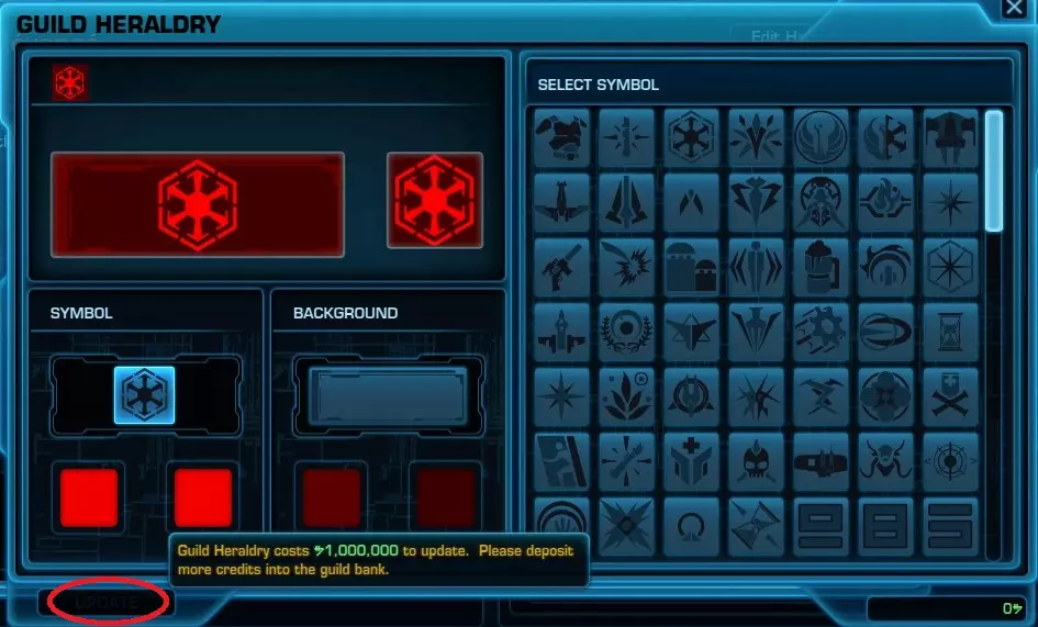 之后点击【Edit Heraldry】进入旗帜自定义界面,选择所需样式后点击【UPDATE】即可。但不要忘记上述提到的注意事项。