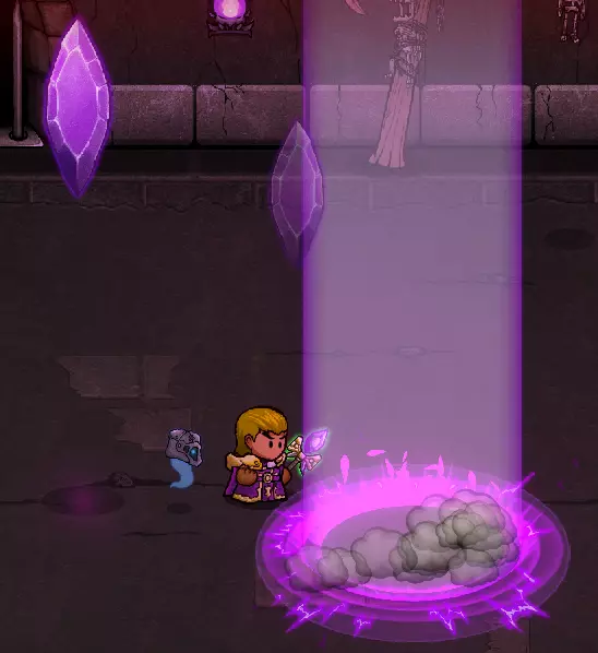 当你捡起一块盔甲碎片时,身边会出现一个戴着头盔的幽灵。如果你捡起第二块盔甲碎片,幽灵会穿上盔甲并吸引敌人的注意力。如果它死亡,会在下一个房间复活。当捡起三块盔甲碎片后,幽灵会获得一把剑的碎片并开始攻击敌人。