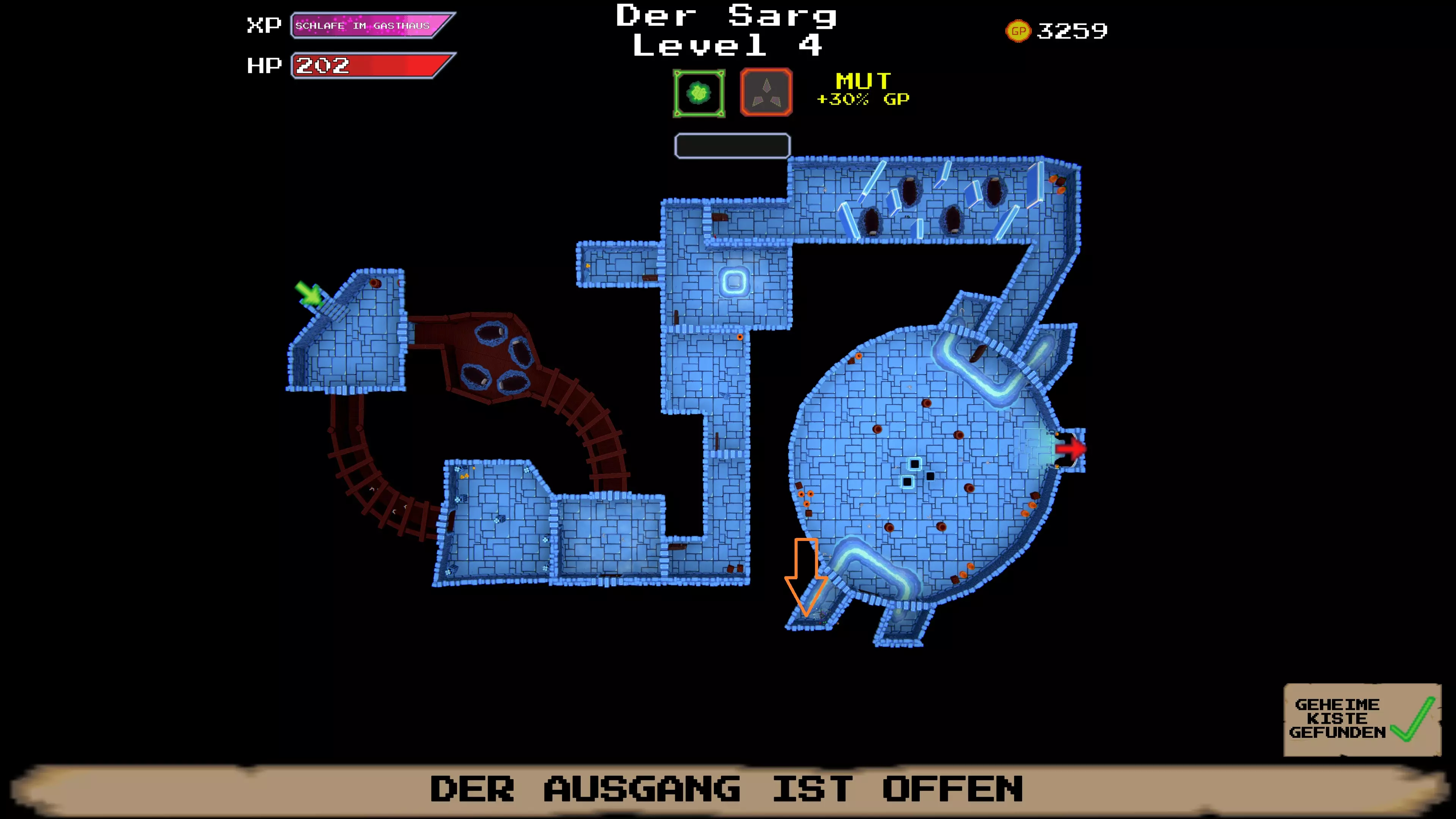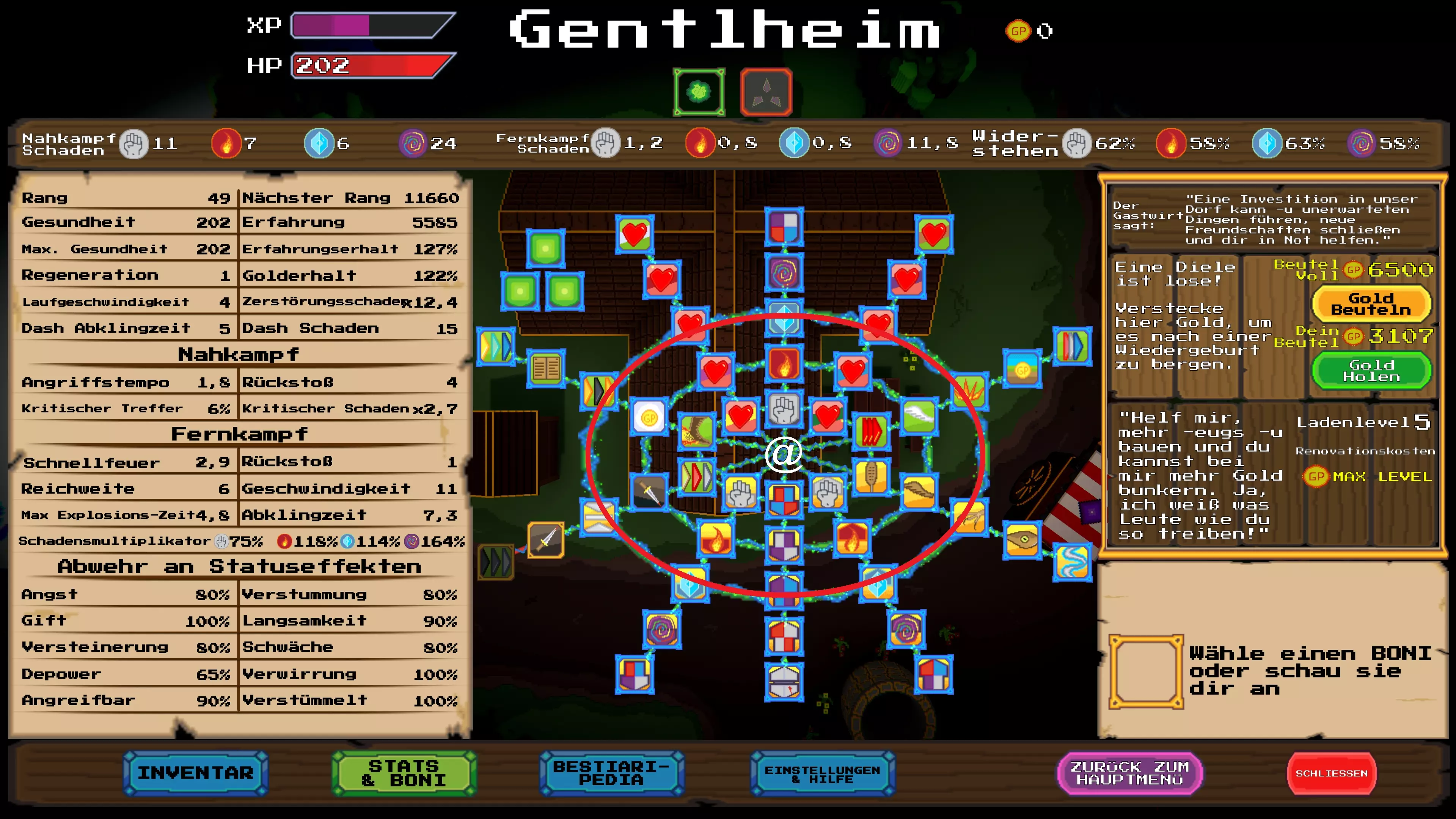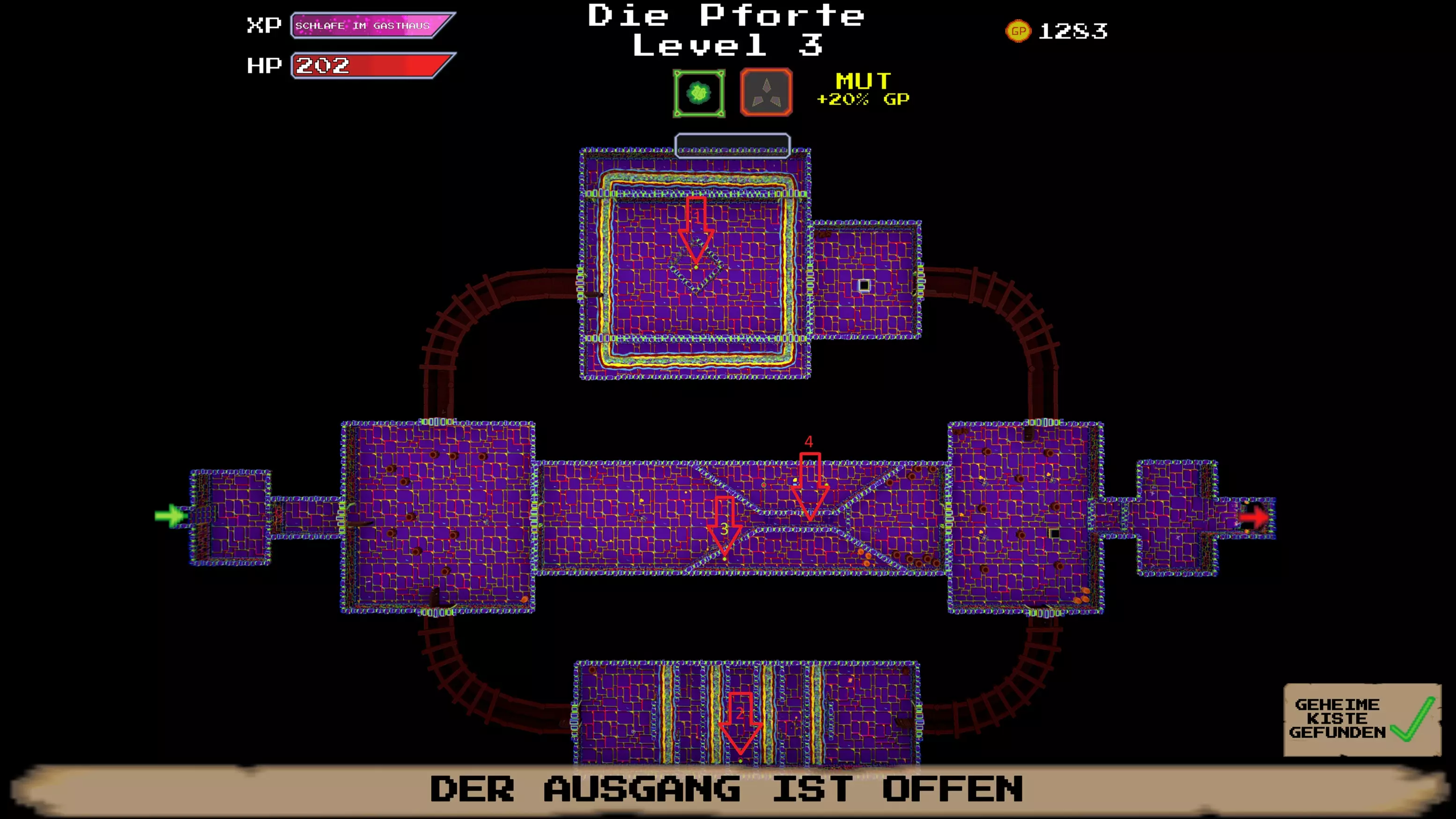 了解你的ABC:捕获奖励单词 几乎每个关卡的右上角都有一个“奖励单词”。通过近战攻击打掉字母。字母变为白色时表示计入进度。集齐整个单词后,会出现一个宝箱。 注意:如果之后死亡且未收集宝箱,该单词仍算作已完成,但宝箱会消失。 等级:新手:提升等级 当紫色经验条充满后,前往酒馆并在最内圈的点消耗经验值来提升等级。这里简直像个动物园 查阅怪物图鉴 在村庄中按ESC键,打开“怪物图鉴”选项卡。