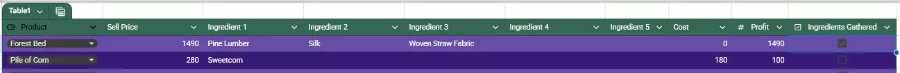 2025年5月28日更新 - 更新了表格,增加了受保护区域,现在可以直接编辑以帮助构建制作数据。 2025年5月29日更新 - 添加了一个复选框,用于在收集材料时忽略商店成本。