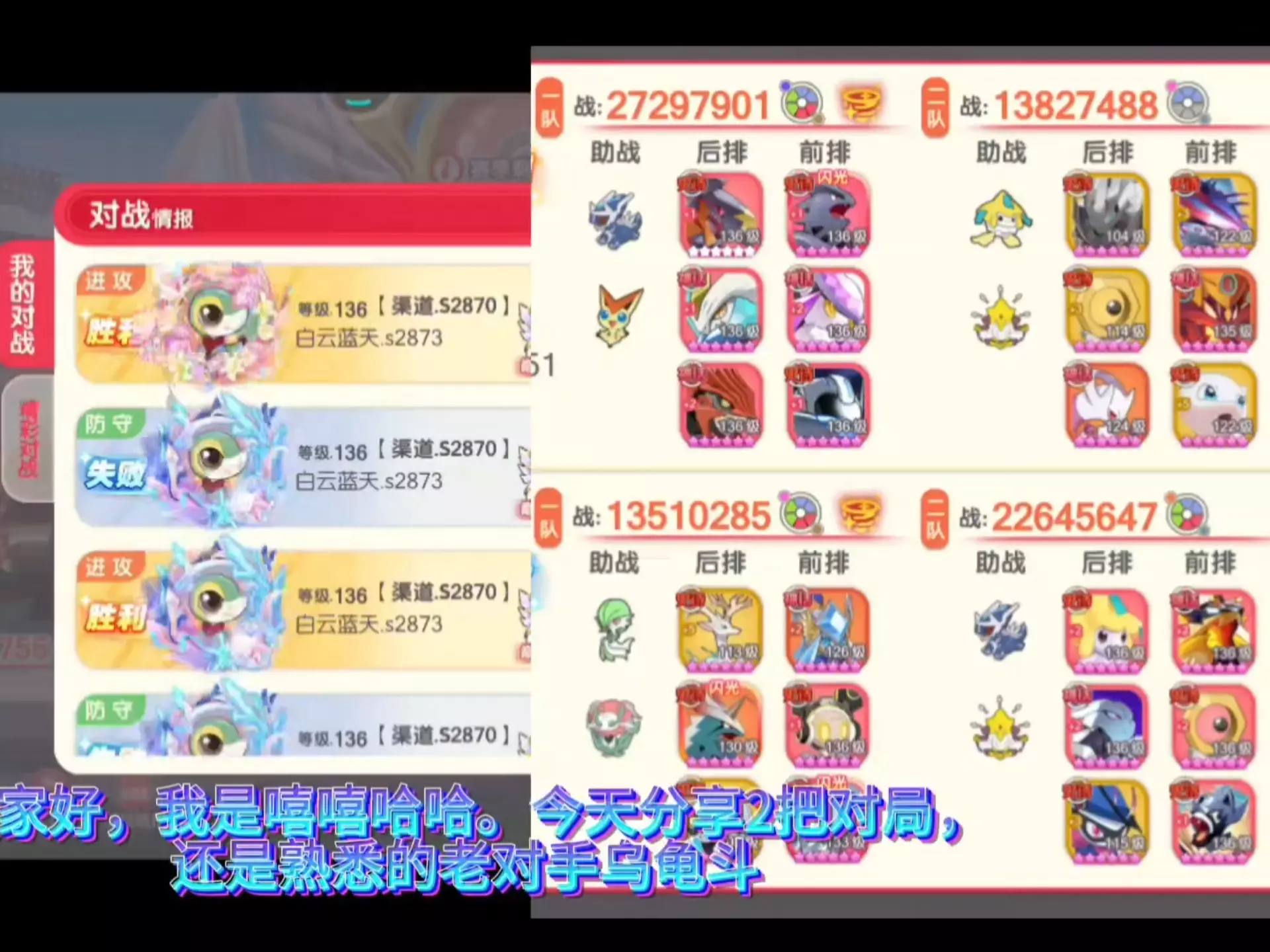 这是《口袋觉醒》的金剑盾王速攻斗队实战内容,展示了跨服竞技场的精灵编队、战斗过程,还有对战战绩,该金剑盾王速攻斗队在实战中取得了不错的对战成绩,总战力可观。