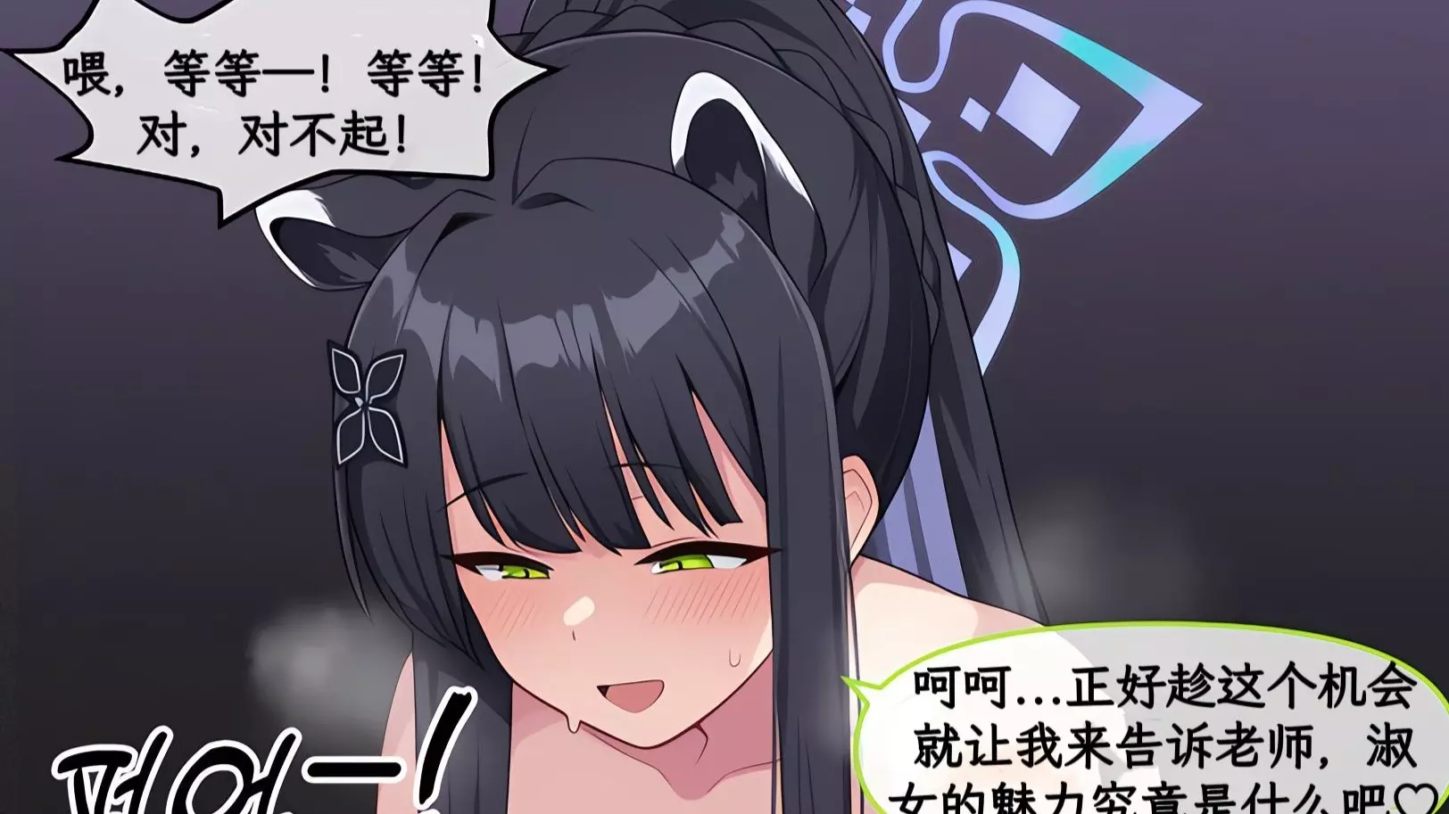 这是《蔚蓝档案》的同人短漫,老师收到求助消息,看到角楯花凛状态不对,随后思考时药子纱雾出现在身后,最后老师看到发烧卧床的角楯花凛。