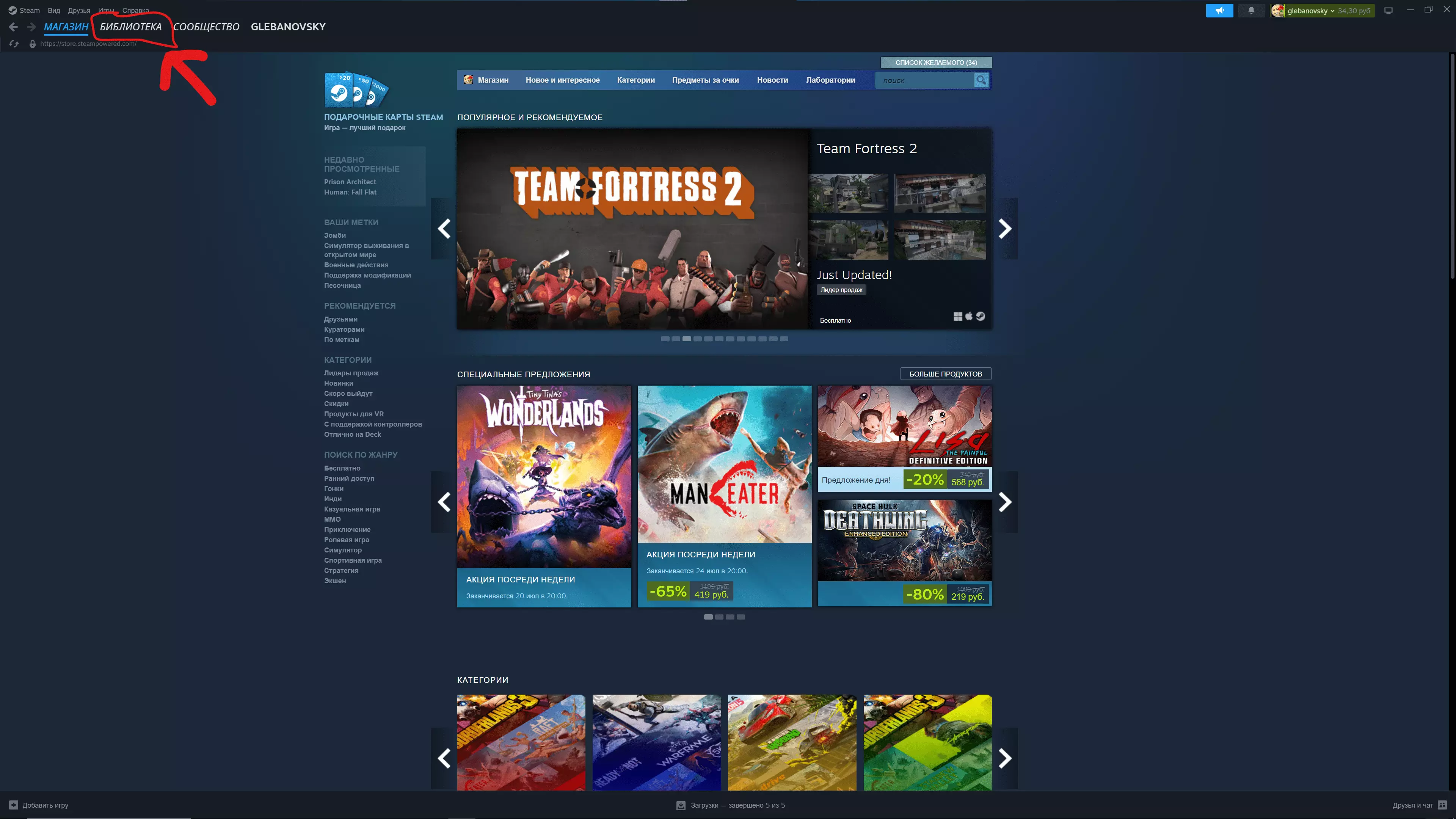 第二种方法:通过Valve公司开发并维护的在线数字发行平台Steam启动。这种方法比第一种复杂,需要您稍微思考一下。 首先,您需要打开Steam,操作方式与通过快捷方式启动《人类:一败涂地》类似(找到Steam快捷方式并双击它)。我的Steam快捷方式是这样的: