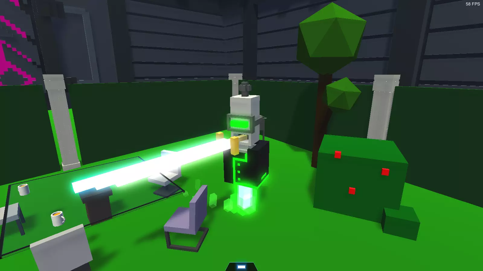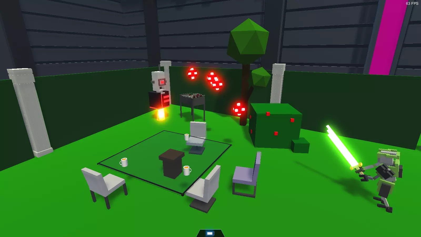 弱点: 1. 不会使用冲撞技能。 2. 当它使用凝固汽油弹时向其射击,它会弹开子弹并进入垂直状态,从而使其凝固汽油弹攻击处于安全状态。 特性: 1. 拥有4个能量格(【能量储备】三级强化)。 2. 拥有【能量恢复】二级强化(能量恢复速度提升100%)。 3. 会持续挥舞它的剑! 4.它能够反弹箭矢,并且会将箭矢直接反弹向你。 5. 它非常频繁地使用凝固汽油弹。 ----------------------- 战术: 我不建议拿着剑去攻击它,因为它会打掉你的剑然后干掉你。但如果实在没有别的选择,那就处于它攻击范围的上方或下方,不断跳跃,尽量用剑攻击它的眼睛。这个机器人很容易被它自己的火焰 breath(火焰吐息)杀死。不管打到哪里,它都会被点燃。如果用锤子战斗,需要把握好节奏,在它的攻击间隙进行打击。长矛能很好地对付这个机器人,关键是要击中它的眼睛。 隐藏机器人 这些是游戏中存在的机器人,但它们隐藏在关卡编辑器中,不会出现在无尽模式里。它们通常是技术性的或已被删减的内容。 玩家假人 玩家模型机器人。使用玩家模型的机器人。曾用于第四章的一个地图场景中。拥有和mk3剑士相同的强化。在常规的关卡编辑器中没有它,但如果安装Mod-Bot和LevelEditor+模组,它就会出现在“Story Asset”文件夹中。 分析机器人 这是一个具有分析机器人模型的机器人,坐在竞技场的解说员小屋里。它没有攻击能力,只能飞行。它曾是舰队分析器的原型。目前尚不清楚它在游戏中的用途。 愤怒垃圾机器人 紫色的垃圾机器人,有着愤怒的眼睛和不满的表情。它与普通垃圾机器人的区别仅在于纹理。如果召唤它,它只会飞进垃圾机器人舱并消失。本质上这是一个被删减的机器人:没有功能,处于隐藏状态,未在任何地方使用。 垃圾机器人 原名 - Garbage Bot。 普通的垃圾机器人。外观为带有螺旋桨、磁铁和面部的绿色立方体。当玩家击败所有机器人后,会从专门的垃圾传送门中飞出2到5个这种机器人。它们通过位于机身底部的能量磁铁收集垃圾,能在小范围内一次收集最多5块垃圾。收集垃圾后,它们会返回传送门并将垃圾倾倒在传送带上,如此反复直到垃圾清理完毕。玩家可以摧毁所有垃圾机器人,此时垃圾传送门将关闭,并会获得成就【я люблю хлам】。有时它们会用悦耳的声音说出各种短语。如果损坏螺旋桨或电磁装置上的5个或更多方块,垃圾机器人就会死亡。 游荡召唤者 原名:Summon Walker。 这是步兵指挥官的古老原型。它曾处于深度测试阶段,当时机器人还只有一种型号,而皇帝、评论员和升级机器人都还是模糊不清的概念。它会四处走动并召唤机器人。外形是一个绿色的、非常高大的无臂机器人,有三条腿,头部类似人形机器人。该角色仍存在于游戏文件中。尝试通过黑魔法召唤时,加载的是没有AI的模型,尽管游戏文件中存在AI。