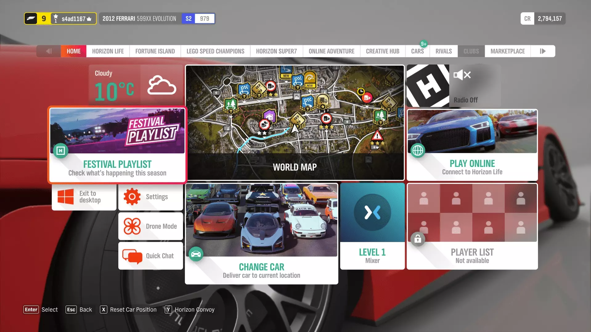 启动《极限竞速:地平线4》 注意,启动游戏前应关闭WiFi。 游戏内 从当前日期起,我已进入第25赛季。 游戏启动时以及从主菜单均可访问嘉年华播放列表。