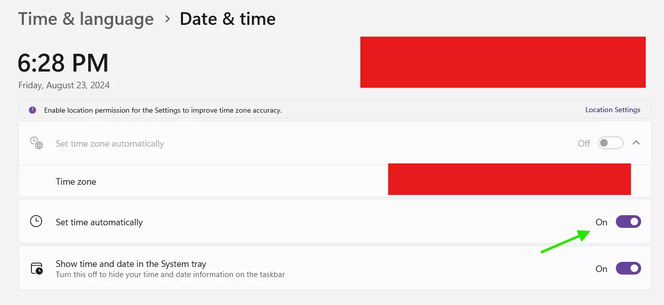 禁用【自动设置时间】