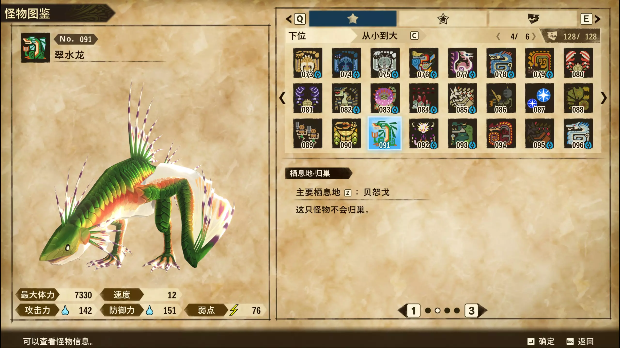 无 上位&下位 怪物图鉴&蛋纹 091~120 编号 名称 图片 蛋纹 上位&下位? 相关备注 091 翠绿龙