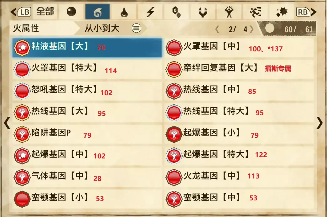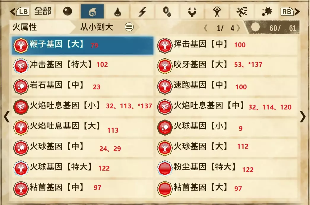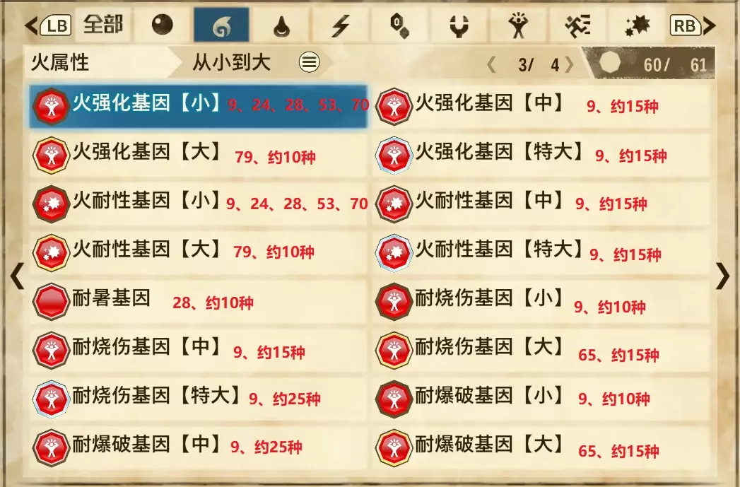 火属性(共4页,本体61种,DLC2种)