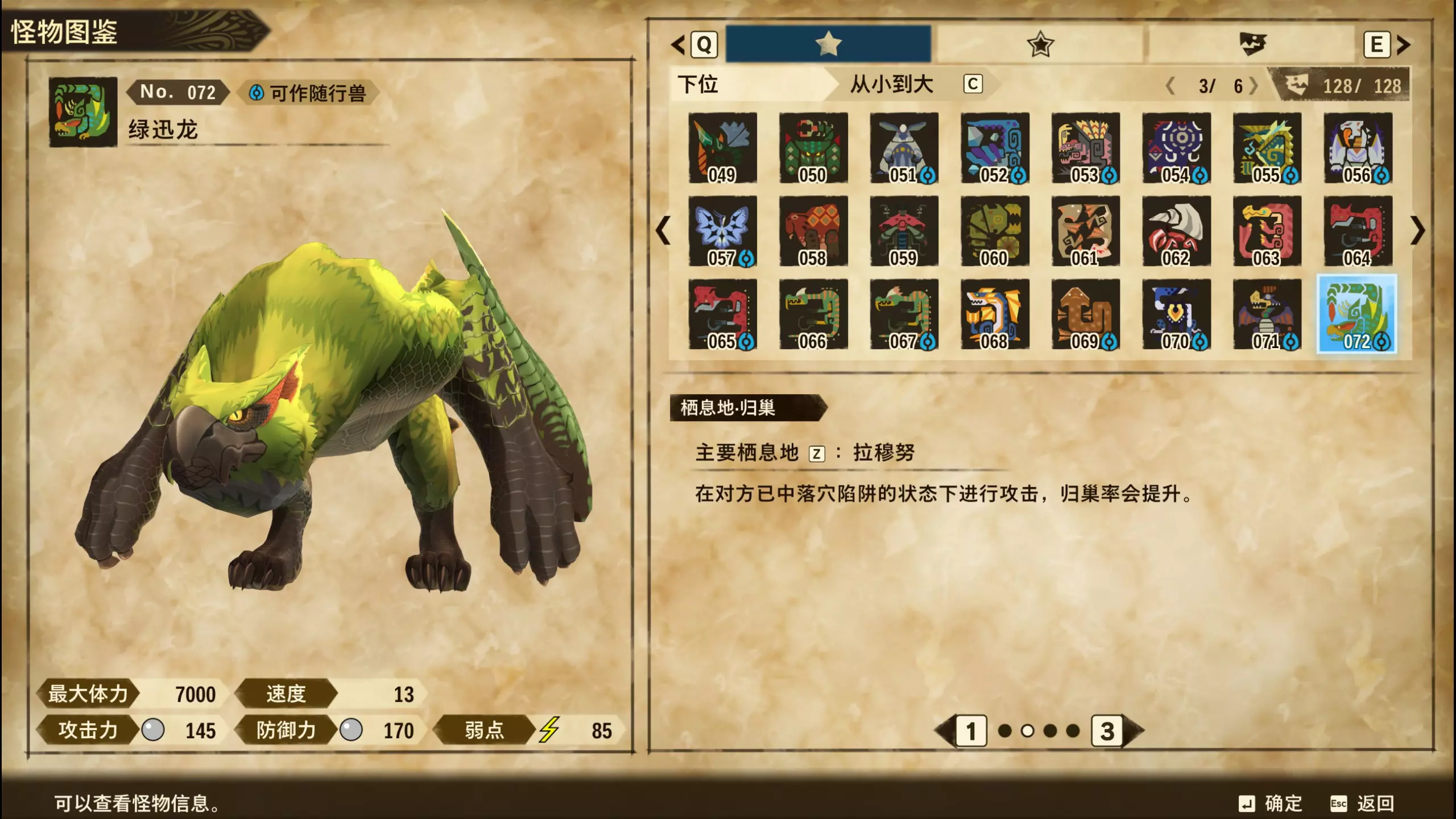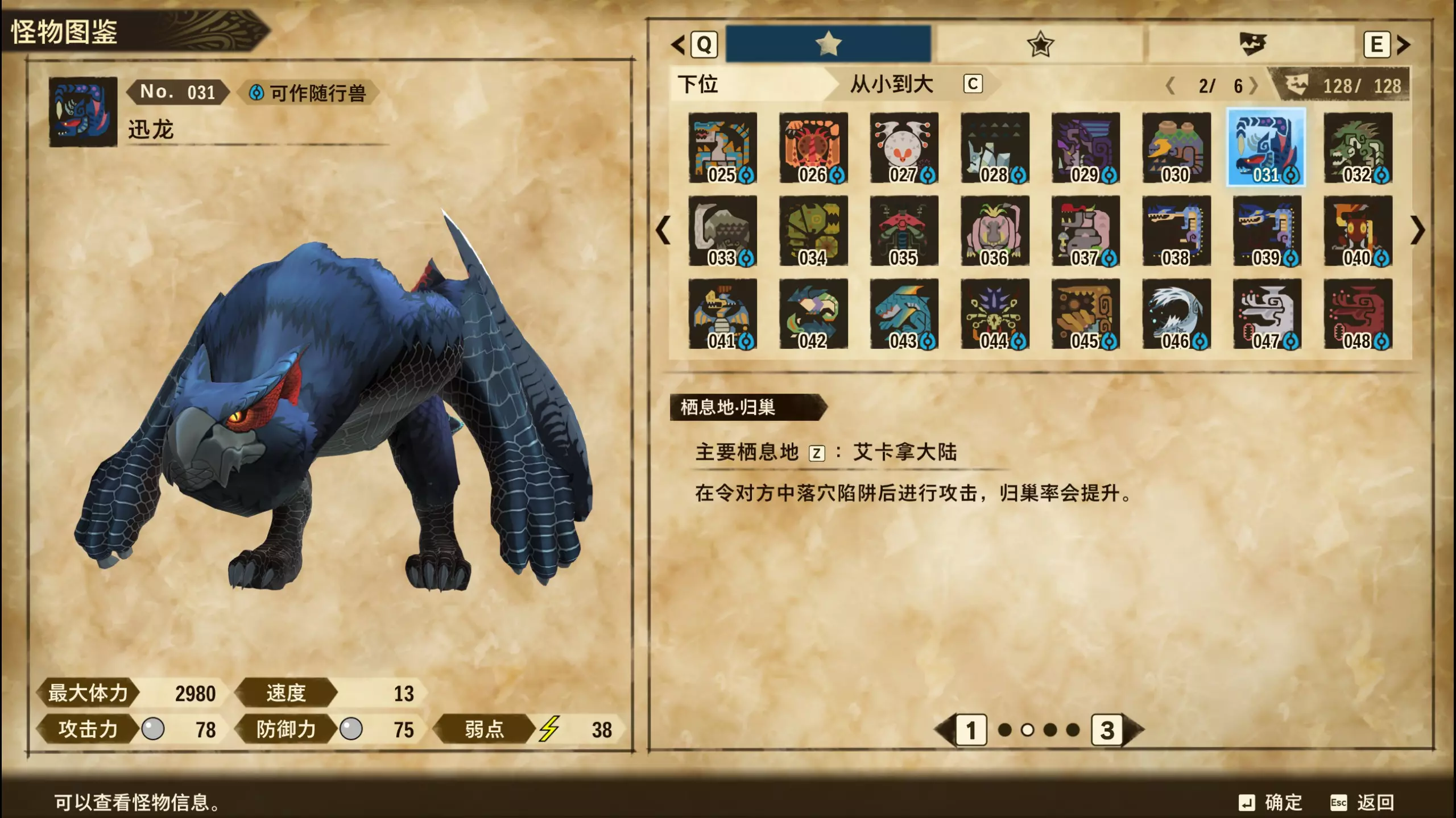 无 上位&下位 怪物图鉴&蛋纹 031~060 编号 名称 图片 蛋纹 上位&下位? 相关备注 031 迅龙