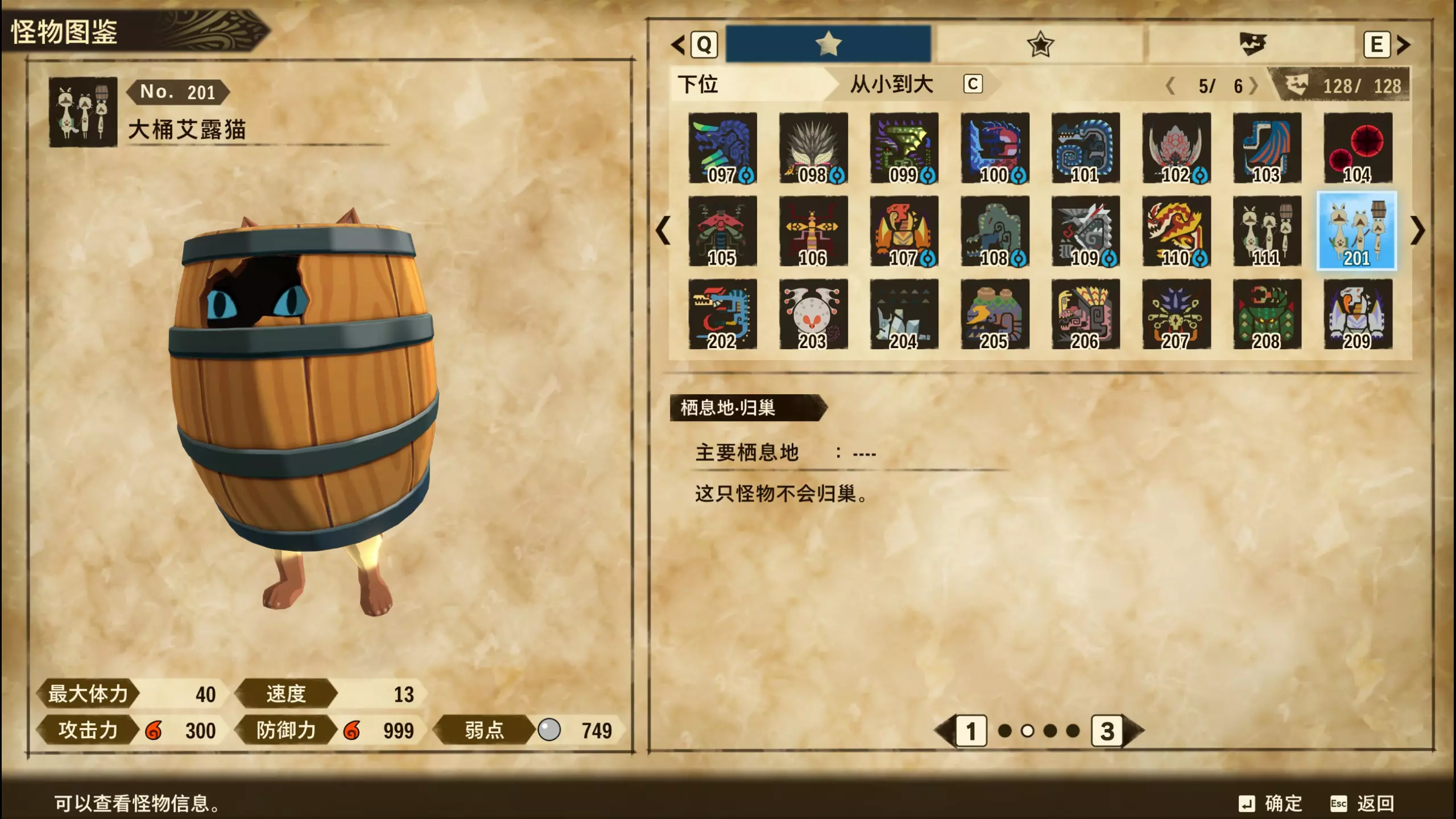 仅随从兽 怪物图鉴&蛋纹 201~217(仅任务怪) 编号 名称 图片 蛋纹 上位&下位? 相关备注 201 大桶艾露猫
