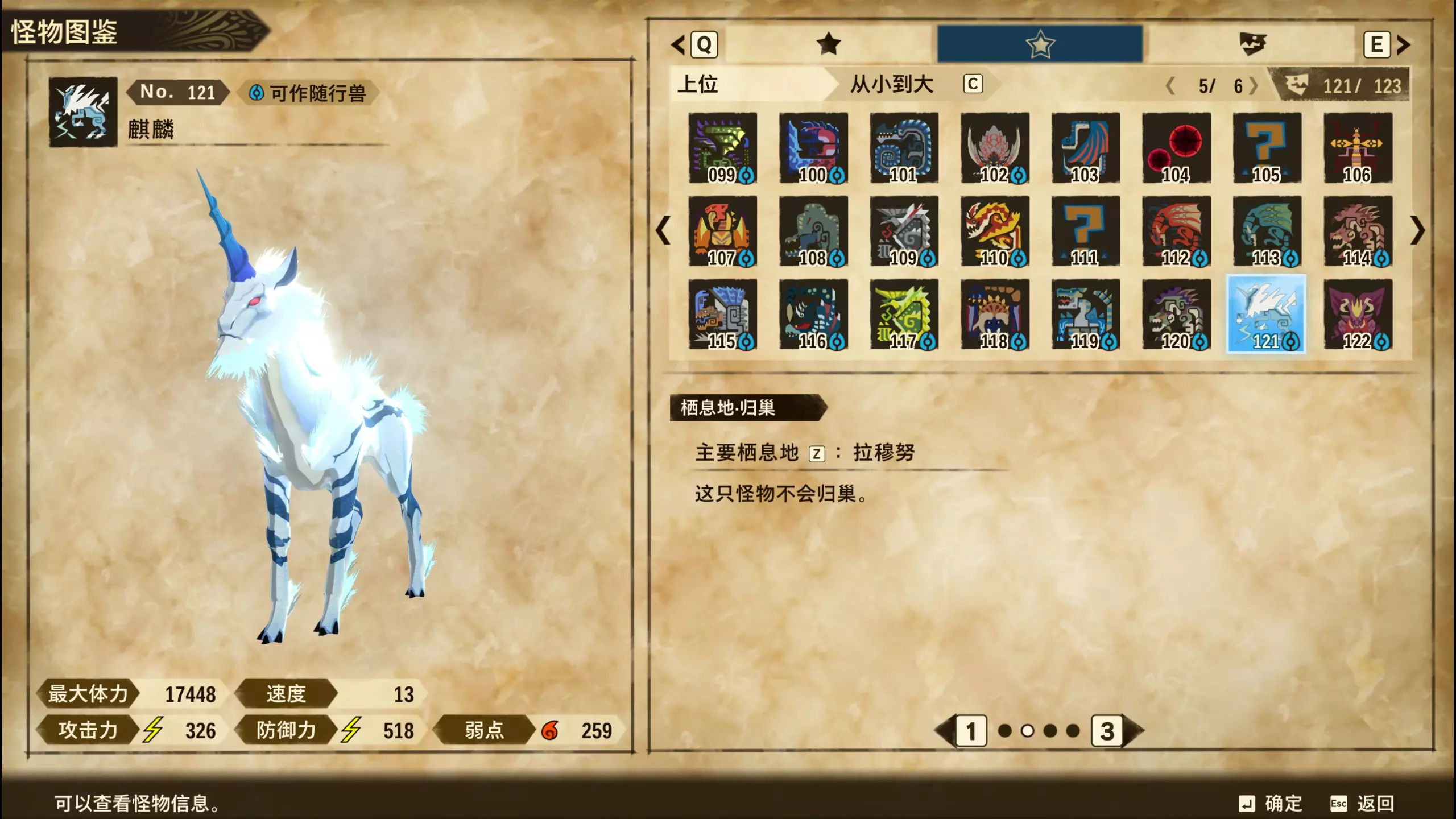 上位 怪物图鉴&蛋纹 121~127(8.05更新) 编号 名称 图片 蛋纹 上位&下位? 相关备注 121 麒麟