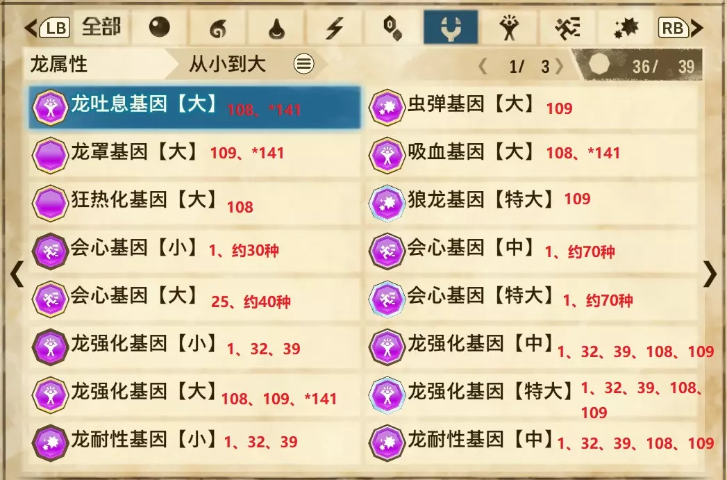 龙属性(共3页,本体39种)