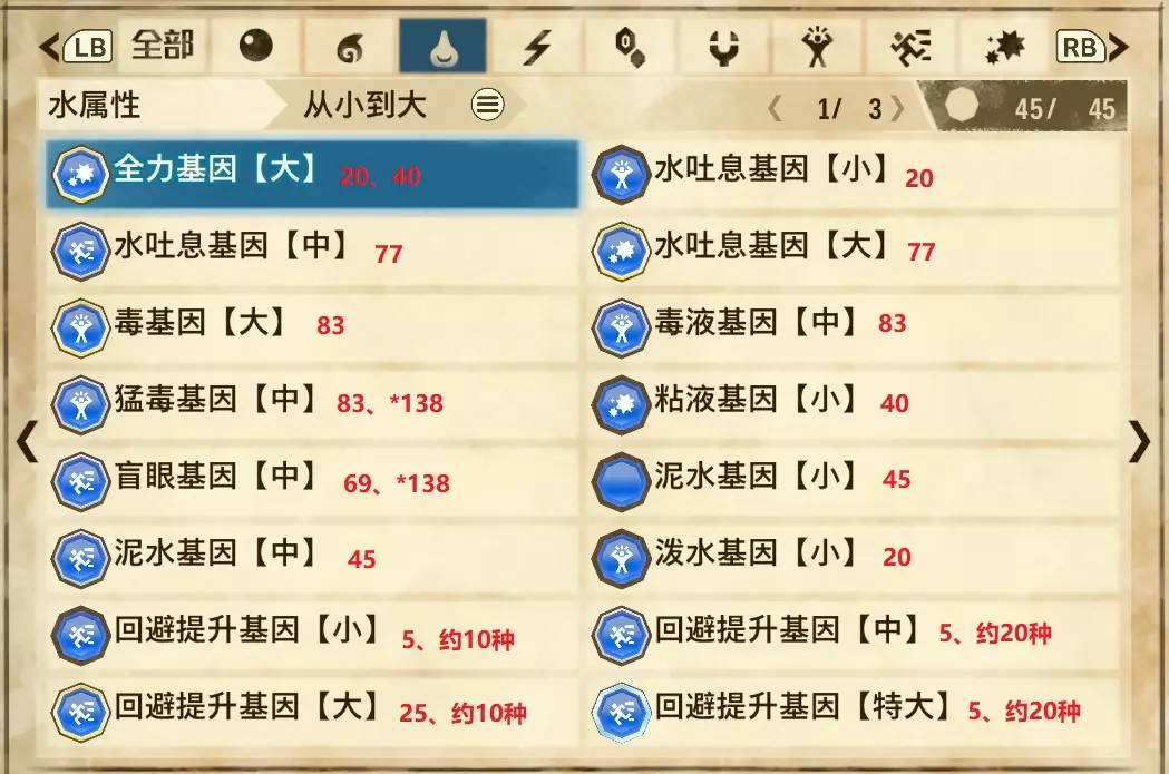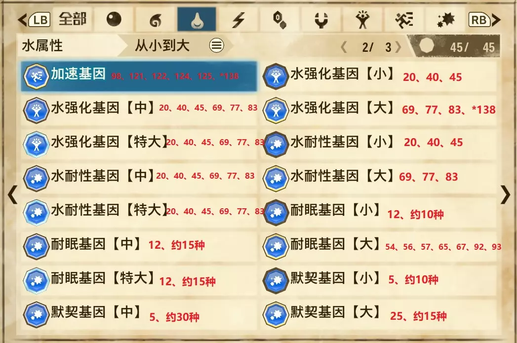 水属性(共3页,本体45种)