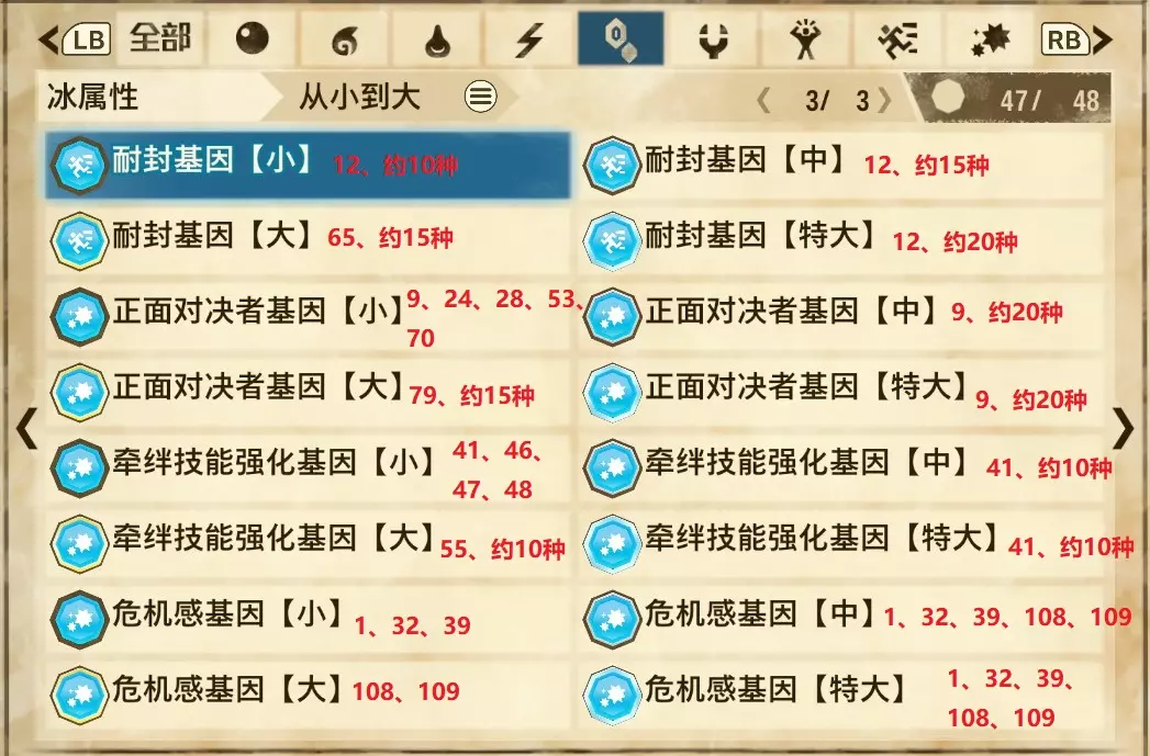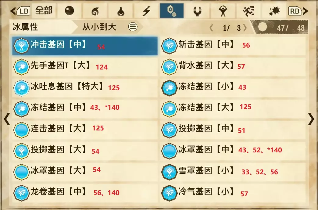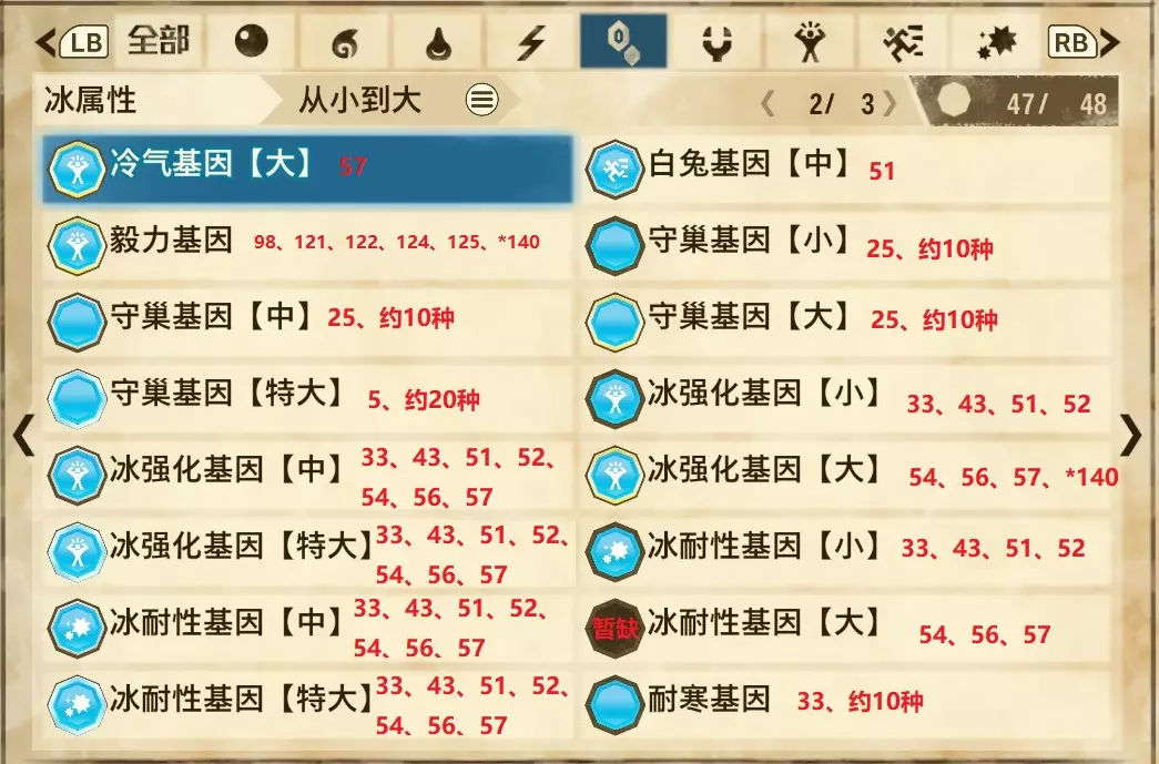 ❄ 冰属性(共3页,本体48种)