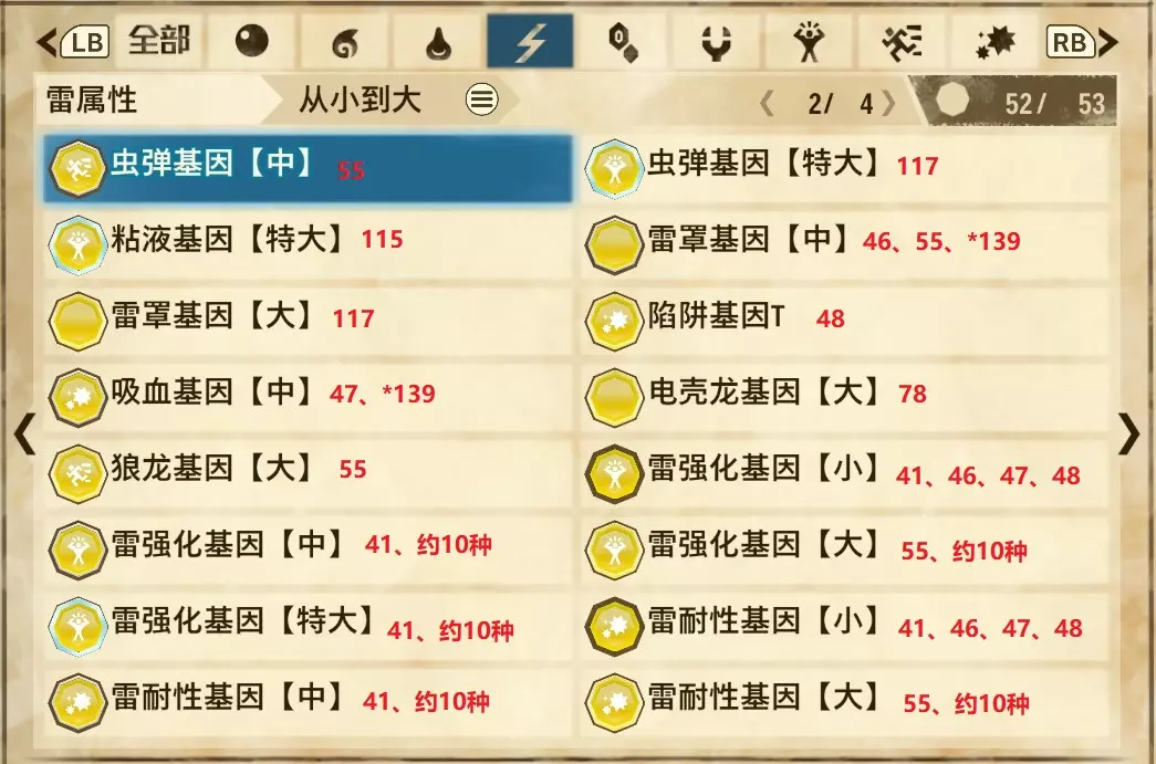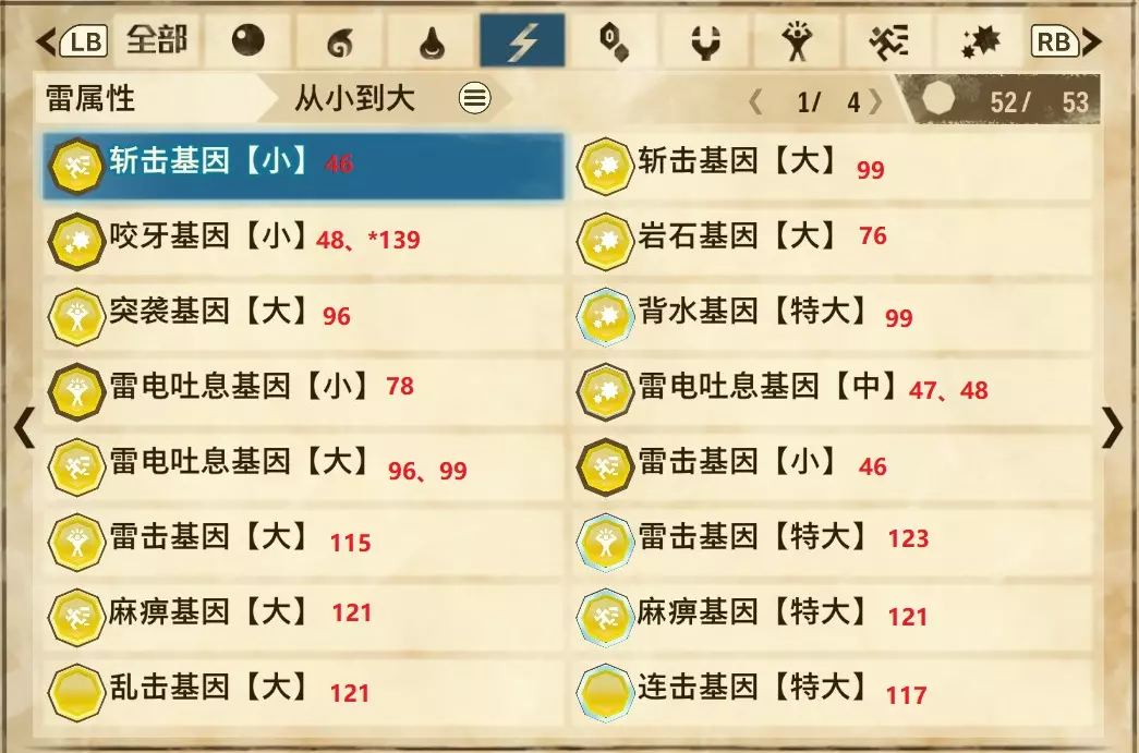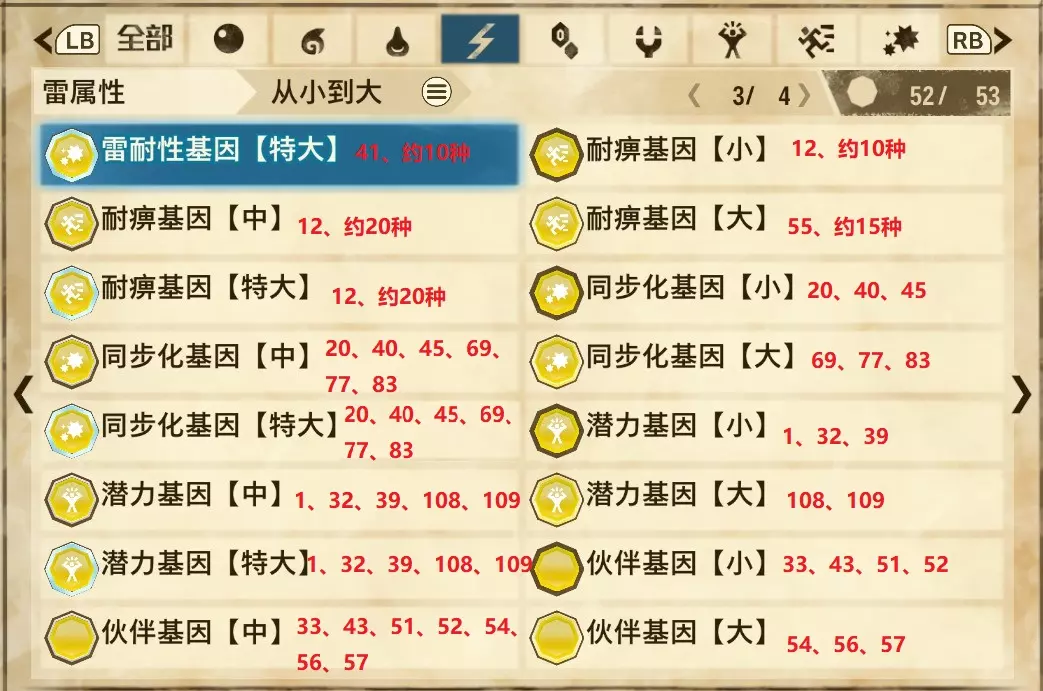 【雷属性】(共4页,本体53种,DLC3种)