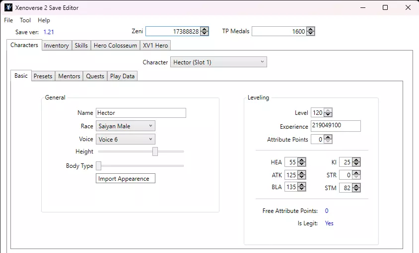 5.2 在线游玩(START.exe - 带EAC) 要使用模组进行在线游玩,你只需再调整一次“xv2patcher.ini”文件,具体是“excessive_air_contamination”选项。默认情况下,该选项设为“false”,你需将其改为“true”。 此选项将使补丁程序绕过启用Easy Anti-Cheat(EAC,易反作弊)的要求,让你可以通过DBXV2.exe可执行文件直接带模组在线游玩……某种程度上是这样。 如前所述,你不能与原版玩家一起玩在线任务或对战,因为如果你使用模组技能或拥有模组角色列表,游戏不仅会自动将你踢出在线对战(离线任务不受此影响),你还可能面临被禁止在线游玩的风险。使用模组进行在线对战的唯一方式是,你和一起游玩的朋友都安装了完全相同的模组,并且模组的排列顺序完全一致(即相同的“data”文件夹)。如果满足上述条件,你和朋友就可以畅玩任意模式,无需担心其他问题(【团队任务】除外,只要安装了任何模组,就无法进行团队任务)。 6. 存档编辑 在《龙珠:超宇宙2》中,编辑存档主要有两种方法,分别是存档编辑器和XML序列化器。虽然存档编辑器是一个专用程序,拥有独立的有序界面,可让你编辑任务进度或分数、金钱数量、 inventory(物品栏)中的物品等内容,但序列化器是一种用于解密存档文件的工具,以便你能在任何文本软件中手动编辑存档。尽管它使用起来不那么容易,但能够完成存档编辑器无法实现的某些操作,例如编辑剧情标记或更改当前可用或已解锁的离线任务。 注意:为避免在编辑过程中可能出现的任何问题,请务必在编辑前备份你的存档文件。你的存档文件位于“Steam > userdata > [用户ID] > 323470 > remote > DBXV21”文件夹中,文件名为“DBXV2.sav”。 6.1 《龙珠:超宇宙2》存档编辑器 Lazybones的存档编辑器是最广泛使用且常见的存档文件编辑方式。它拥有专属的用户界面,每个选项都有详细说明,使整个操作过程变得非常简单。