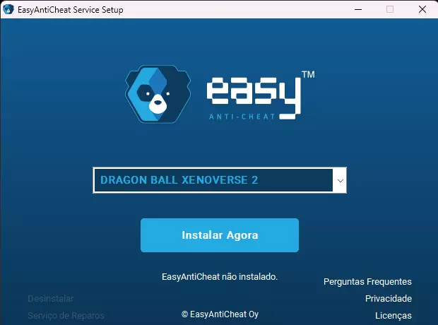 5. 启动游戏 有两种使用模组游玩游戏的方式。如果你打算完全离线游玩,选择第一种方法。否则,如果你想与安装了相同模组的朋友在线游玩,选择第二种方法。如果你安装了模组,将无法与使用原版(未安装模组)游戏的玩家在线游玩。 5.1 离线游玩(DBXV2.exe - 无EAC) 要使用模组进行离线游玩,安装模组后,通过“bin”文件夹内的“DBXV2.exe”文件启动游戏……这样就可以了!只需确保始终通过这种方式启动游戏。如果你通过Steam库或桌面图标启动游戏,将会开启Easy Anti-Cheat(反作弊系统),这会阻止游戏启动。或者,你可以在游戏目录的专用文件夹中打开程序并禁用EAC。但请注意,这样做后你将无法在线游玩游戏(以下是从【七龙珠:超宇宙2】中卸载Easy Anti-Cheat程序后该程序应有的样子)。