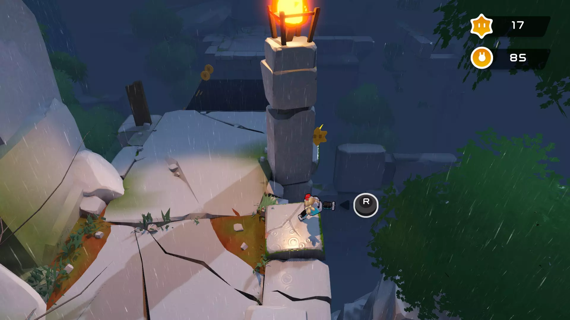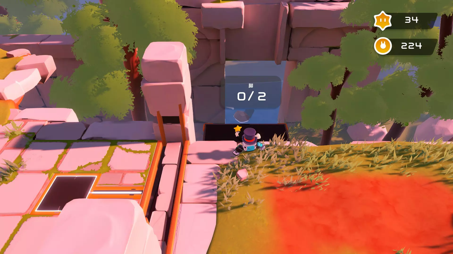 第八关【被遗忘的山脊】 在通过两只脚解锁的石门后,可以看到上方还有一个隐藏的机关,机关上藏着一个星星。