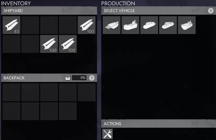 你会发现,某些物品类型一旦提交到前线市政厅和前线作战基地(FOB),例如任何步兵武器,就无法堆叠,因此在提交后用卡车运输它们会非常不切实际。因此,你应当注意不要在单个地点过度储备这类物品(如步枪),超出其在可预见未来的实际需求,应将这些箱子存放在仓库/海港中,直到其他地方需要它们。将单个武器从基地中取出并转移到新的活跃前线,几乎不值得任何人花费时间。 仓库/海港斜坡用途 仓库/海港斜坡有两种用途:提交载具和已装满的货运集装箱。在这两种情况下,你需要将载具停放在坡道上或将货运集装箱放置在坡道上,然后在仓储站/海港中选择【提交车道设备】按钮。对于货运集装箱,它会自动清空,而集装箱会留在坡道上供再次使用。 小队存储 如果你在小队中,仓储站/海港的库存允许你为小队的每位成员存储50个可存储的小队板条箱和3辆载具。如果在约48小时内没有添加新的板条箱或载具,小队存储的内容将变为公共资源。 备用存储 你还可以创建多个备用库存。这些库存最多可存储100箱大多数物品,某些特定物品允许存储更多数量。你可以授予或获取其他玩家的储备仓库访问权限,以便向其中存入或从中取出物品。 造船厂 生产
