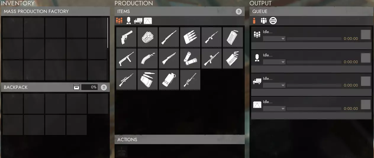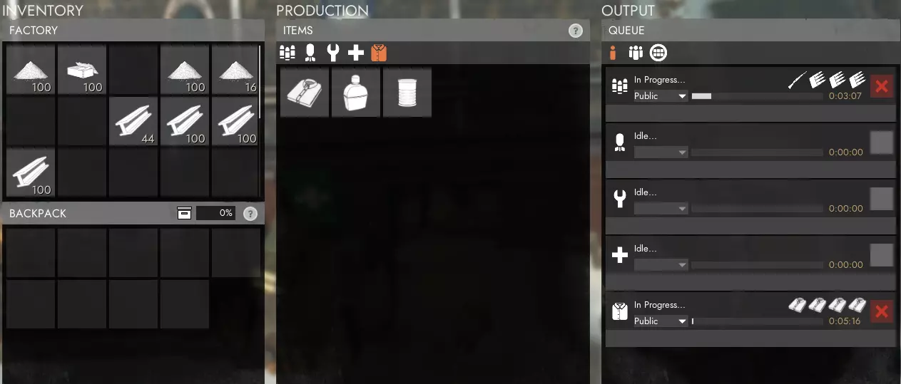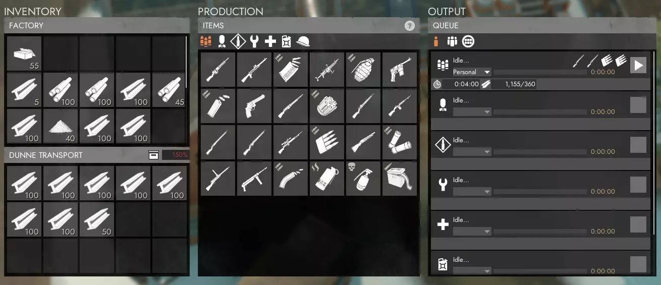 工厂是你生产武器、弹药以及其他有用工具和装备的地方,例如扳手、收音机和防毒面具。在繁忙的生产地点,这些通常是生产的瓶颈,因为每个玩家都必须等待其他玩家之前开始的所有订单完成。