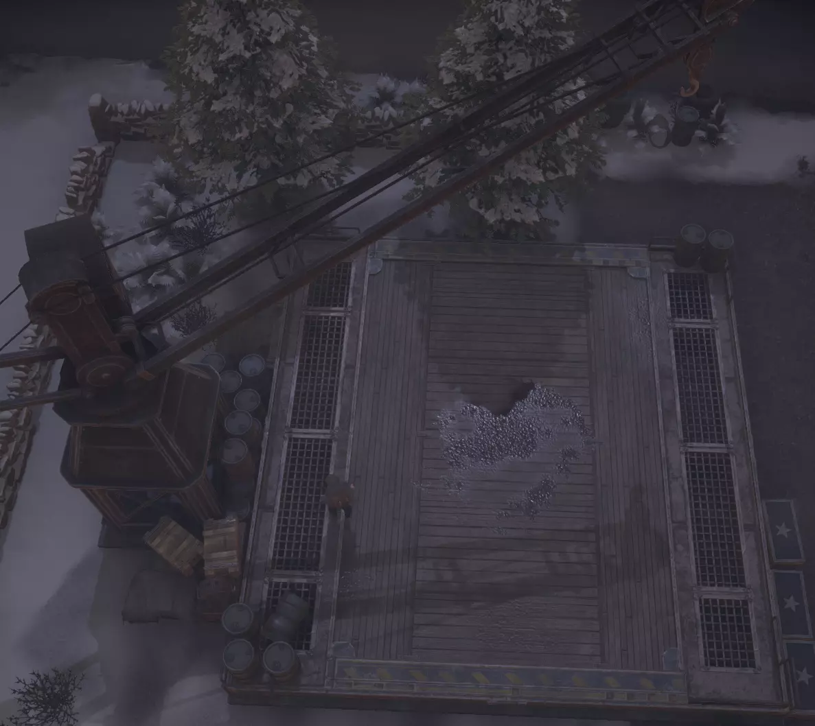 建造场是你生产货运集装箱、资源集装箱、混凝土搅拌机、沙袋托盘、带刺铁丝网以及阵地工事的地方。请注意,建造场生产的所有物品均为可运输物品,需要起重机进行移动。