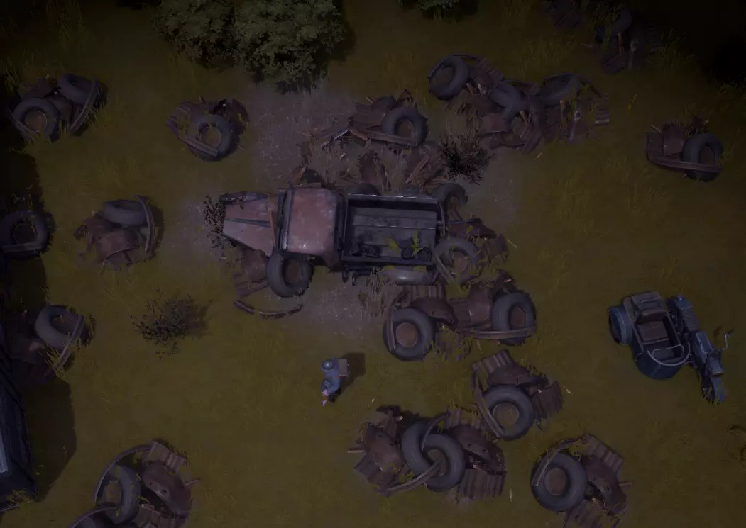 你可以驾驶卡车前往最近的废料场开采废金属。这是最常见的基础资源,可被精炼成多种不同资源。废料场中央的大型物体无法采集,但周围的小型节点可以。使用锤子(后期科技解锁的大锤每次敲击可获得更多废料)击打这些节点来收集废料。记得将卡车的货舱装满,你总是会需要更多的废料。 如果拾取的物品过多,因背包重量过重而无法回到卡车里,你可以打开背包,按住【Alt】键并点击想要丢弃的物品来将其扔掉。只有当负重低于100%时,你才能进入载具。