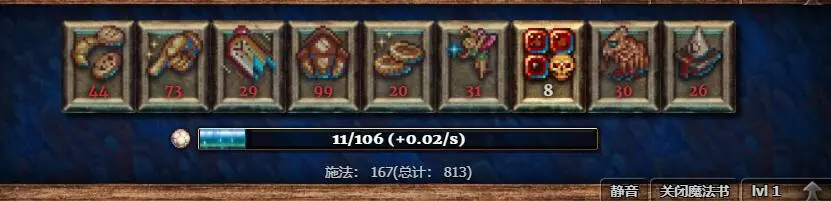 小精灵母亲(俗称奶牛)的副作用是黄金饼干(以及开启面包虫系统后的红饼干)出现频率减少15%/10%/5%。工业小精灵(齿轮)同样会使黄金饼干频率减少10%/6%/3%。时代小精灵的加成会随现实时间周期性变化,以下是换算成北京时间的建议表格: 时间(UTC+8) 槽位 08:00 钻石 09:12 红宝石 12:00 玉 17:19 钻石 18:20 玉 20:00 钻石 21:12 红宝石 02:00 钻石 03:30 不装 05:00 钻石 06:30 不装 所有万神殿效果无论正面负面,在离线后均不生效,所以不用担心睡前未卸下而长时间受到负面效果影响。把t调到+8即为北京时间 日常配置的话,没事奶牛基本锁死钻石,加成越到后期越明显 再扔个齿轮到随便哪个位置 有功夫跟着调就根据时间表调时代 在线时糖块进入成熟倒计时时可以上秩序,加快点收获速度(不用一直挂着,一挂上去时间会立即减少,记住下线时无效) 纯躺平流黄金饼都不点的可以上禁欲 收集节日活动相关的上节日精灵 2.3 小游戏:魔法书