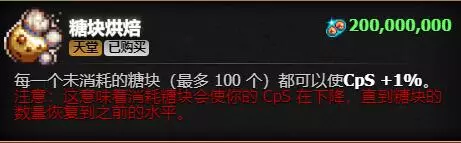 最多同时有10只饼干虫,某个天堂升级能额外增加2只上限。每只饼干虫会吞掉5%的产量,10只就会使产量下降50%。点爆饼干虫时会返还被吞掉的部分,还会额外给予一些,这就相当于你每天把固定一部分工资存进银行,随时可以取出,而且还带有利息。 关于利息的具体数额,举个例子来说明:假设你当前的每秒产量为10亿,在没有饼干虫的情况下,10秒后你会获得100亿。当有10只饼干虫时,产量减半,10秒后相当于总共被吃掉了50亿。表面上点爆一只饼干虫会以1.1倍返还,但每只返还的基数并非平均分配50亿÷10=5亿,而是都以50亿为基数进行计算。也就是说,每只饼干虫会给你50×1.1=55亿。10只全部点爆后,再加上原本产出的50亿,你的实际收入就是600亿,是原来的6倍。后面增加2只,再加上天堂5%的升级和万神庙蔑视精灵,效果会更高。 虫子的刷新以实际画面帧率为基准随机出现,这意味着不仅下线时不会刷新,挂在后台被降低帧率的情况下,也可能会拖慢新虫子出现的时间。 刷新新饼干虫时,有极低几率出现闪金虫,其加成是普通虫子的3倍,不过我还没遇到过。 平时保持虫子数量满员即可,需要现金时点够足够数量就行,或者没事点一只来赌闪金虫出现。 4.2 红饼干 进入老太婆末日之后,随机出现的黄金饼干会有一定几率变成红饼干。红饼干会附带负面效果,例如损失一小部分饼干、产量减半(运气更差的话甚至会按建筑数量的百分比来减少)、产量归0但手动点击饼干每下相当于xx秒的产量。正面效果会附加【老年狂热】,持续几秒内产量变为666倍。整体而言,负面效果占比略多于一半。(注意这与《命运之手》中炸膛时出现红饼干的概率分布不同,后者的负面效果占比为80%)。3. 末日阶段 在进入末日后,研究所会继续研发新研究,此时可以继续购买研究,无需担心更多副作用,直到进行【共体洗脑】。 这个阶段统计中显示【老太婆元老】状态为【觉醒】,此处称为阶段1。此时随机黄金饼变红的几率为1/3。 购买【共体洗脑】(描述会出现红字警告但不会弹窗)后,状态变为【不悦】,此处为阶段2。此时红饼干几率变为2/3,饼干虫出现时间缩短。 继续研究并购买【长者契约】后,状态变为【愤怒】,此处为阶段3。此时所有随机出现的黄金饼干都会变为红饼干(以上几率均不影响【命运之手】),饼干虫出现速度进一步加快。阶段3时会提供【长者誓约】升级,购买后会暂时使状态回到开启末日前,黄金饼干恢复正常,所有虫自动点爆,持续半小时,此时状态显示为【安抚】。 过期后可再次购买,价格会上涨,上限4.4万亿。购买10次后会解锁一个升级,能让持续时间延长到1小时(购买5次可获得成就)。 购买过一次誓约后会解锁【长者盟约】,消耗现金并减少5%产量来永久关闭末日。其本质是一个开关,你可以再次点击重新开启末日,同时5%的减益效果也会撤销。你可以卖掉全部老太婆强制结束末日,但只要再买一个就会重新开启,回到你之前的阶段。 飞升不会继承末日状态,一切从零开始。 不同阶段还会影响糖块生长的变异,这个等讲糖块再说吧。 4.4 选择 点黄金饼干比较频繁的留在阶段1。 纯挂机到阶段3,后面的研究加成还是相对明显的,手痒了想点随机黄金饼就誓约或盟约回去。不过誓约半小时不能中途取消回去,期间你要不想点了又没饼干虫加成还是血亏,盟约就灵活很多。 5.糖块相关 糖块相关的天堂升级集中在左上角,前中期解锁可以往那边努力。 糖块在成长时有几率发生突变: 分叉型:一半的几率获得2个糖块,一半几率获得1个。 金色:等概率获得[2-7]个糖块,并在收获时翻倍现有饼干(上限24小时当前产量),获得黄金饼干出现频率+10%的增益效果,持续24小时。 肉块:只在开启老太婆末日时出现,且出现几率随阶段数上升提高,收获时40%获得0个,40%获得2个,20%获得1个。 焦糖化:等概率获得[1-3]个,回复糖块冷却。 突变相关的天堂升级和龙挂上曲线光环后,剩下的就纯粹看运气了。不过维基说法下线时自动收获后生成的糖块只会是普通型,所以收获时能上线尽量上 个人使用指导: 先把4个小游戏解锁,然后把农场升到9级让花园面积最大。玩股票多的可以把指针升12级解锁最高级仓库(银行等级会影响价格上下限,不过还是不推荐这时候升银行) 然后就是憋这个