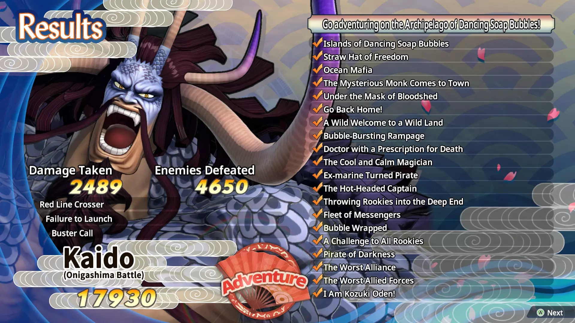 以下是专注于该地图目标时你能获得的分数。我没有去获取非必要的小兵击杀(每500个小兵可获得300分),也忽略了宝箱(每个1000分)。在剩余3分多钟的情况下通关,并且没有理会灵魂敌人,所以如果你去击杀这些敌人,很容易就能获得超过20000分,但此关卡要获得最高的任务结束奖励【力量之魂】,你只需要15000分。灵魂敌人在关卡完成后只会提供其他类型的灵魂作为奖励,所以说实话,最好忽略它们,专注于获得15000分以获取最高的力量之魂奖励。 和之国提供耐力之魂。 甜点岛提供生命之魂。 海军基地提供防御之魂。舞动气泡群岛会产出力量之魂。 这里是各种灵魂类型的刷取区域,因此你可以忽略每个任务中的灵魂敌人。 第一部分