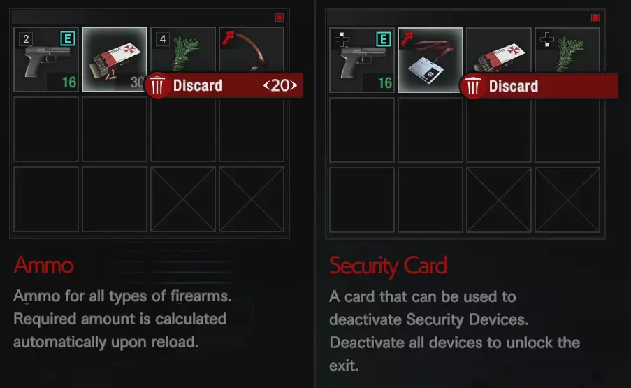靠近物品到足够距离时,会出现抓取选项并显示物品名称(例如:修理工具箱、绿色药草、蓝色药草)。此时物品会被标记为已检查,游戏会在地图上添加一个圆点标记。拾取物品后,地图上的标记会消失。如果未先检查物品,即使从远处看到,地图上也不会标记该物品。 掉落物品和关键物品也会在地图上标记,方便你之后回溯寻找。