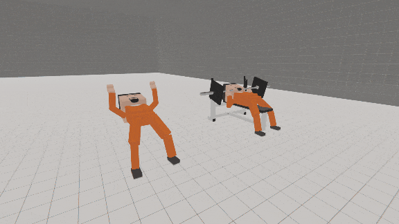 理想情况下,你想用于此的武器选择是【带配重的杠铃】。 目前无法让杠铃搁在手柄上并让目标抓住它们。 保镖 双臂交叉