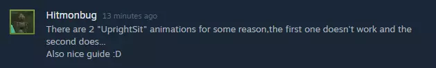 2021年6月30日:将Bodyguard: Arms Crossed从GIF格式改为PNG格式;移除了UprightSit的错误原始参考图并替换为正确图片;删除了描述中的用户署名以及“存在两种UprightSit动画”的表述(该情况已不再适用,但仍会在致谢部分保留用户提及此事的图片);将SaloonTub从GIF格式改为PNG格式;调整淋浴GIF的显示位置使其更靠近。 2021年7月26日:更新了VRBox的描述。