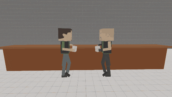 “Drink”和“DrinkRight”的明显区别在于握持饮料的手以及另一只手的摆放位置。通常最适合这个动画的杯子是来自“Biker Bar”的马克杯。卧推