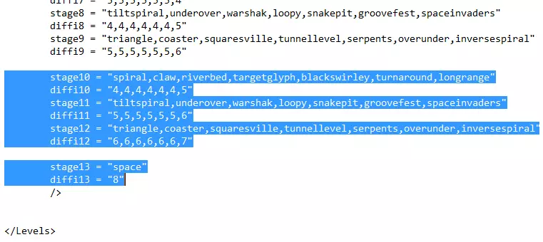 务必创建副本,以防万一出现意外情况! 第二步 使用任意文本编辑器(例如记事本)打开该文件 然后滚动到文件的几乎最底部,即找到第一个StageProgression