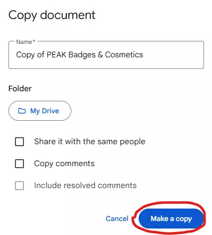 选择你想要保存副本的名称和文件夹,然后点击弹出窗口右下角的【制作副本】。