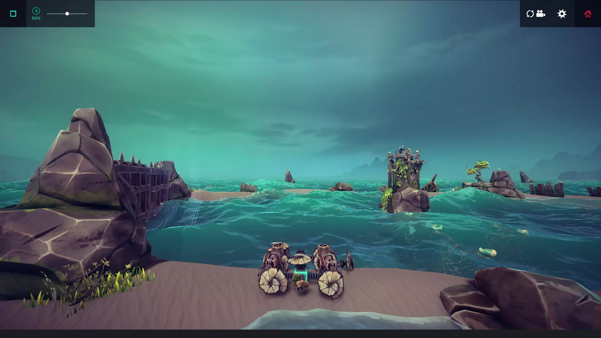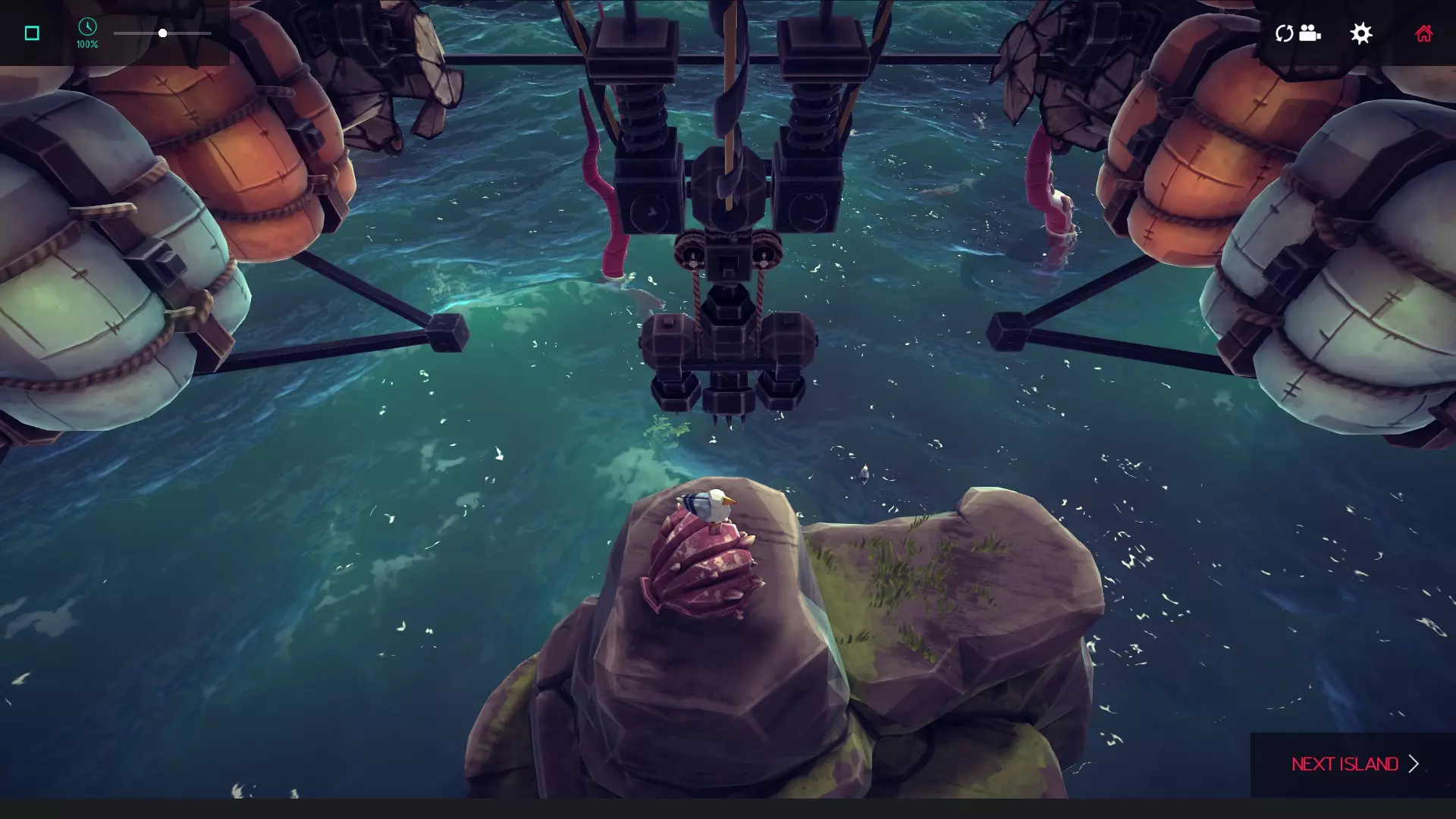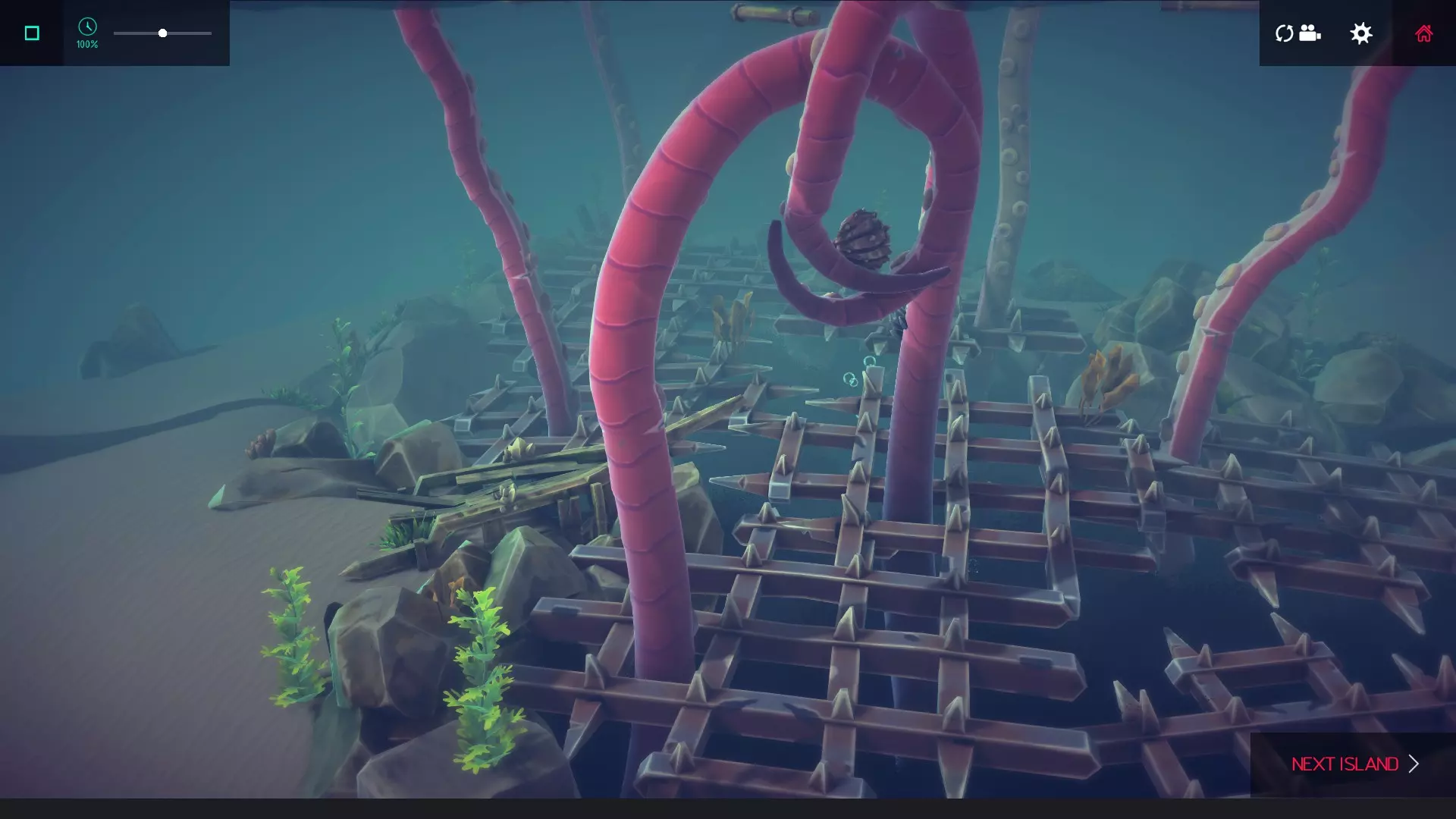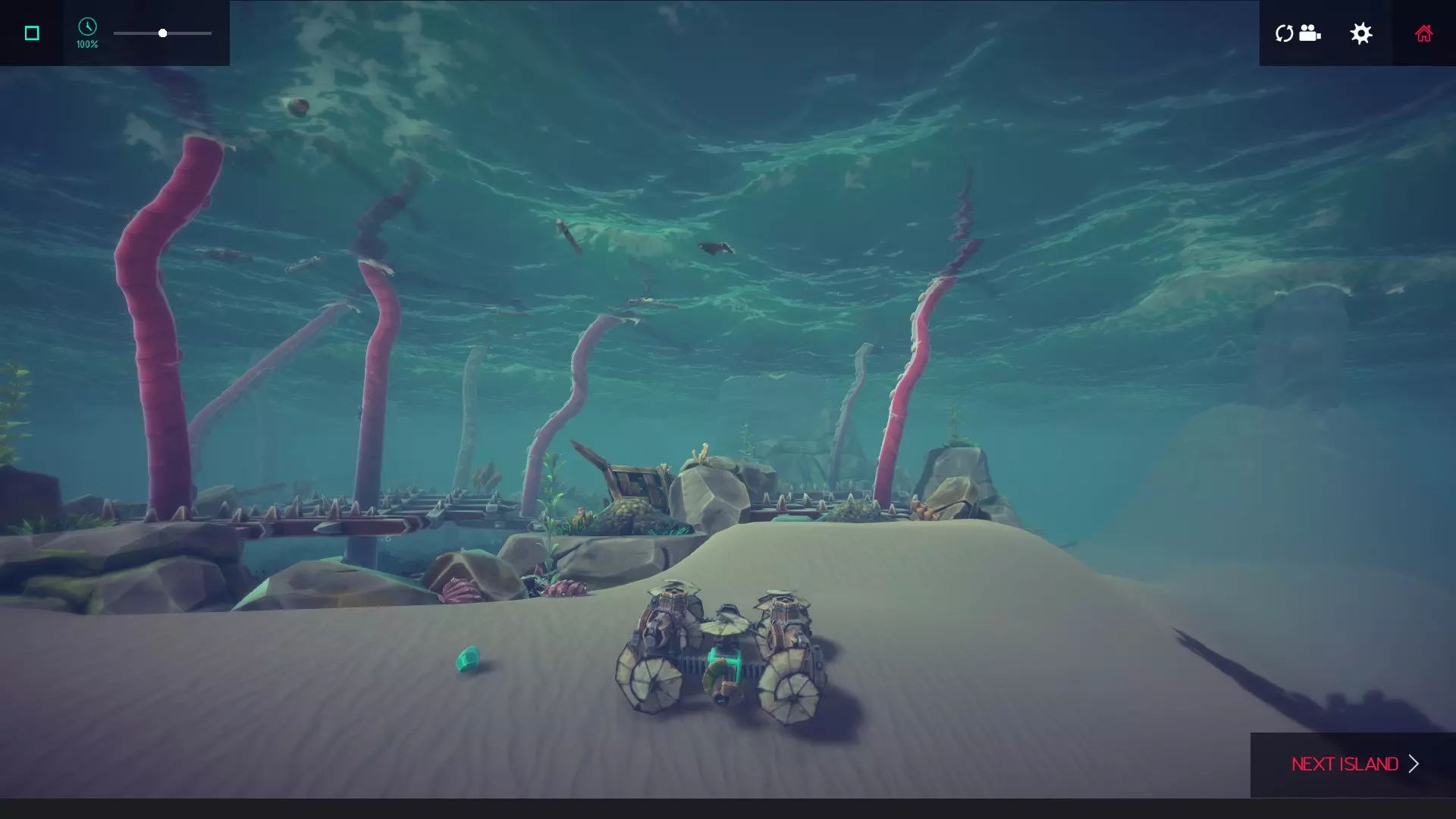 建议:建造一艘前端带有抓取器的灵活潜水器,然后去收集关卡后方的笼子。