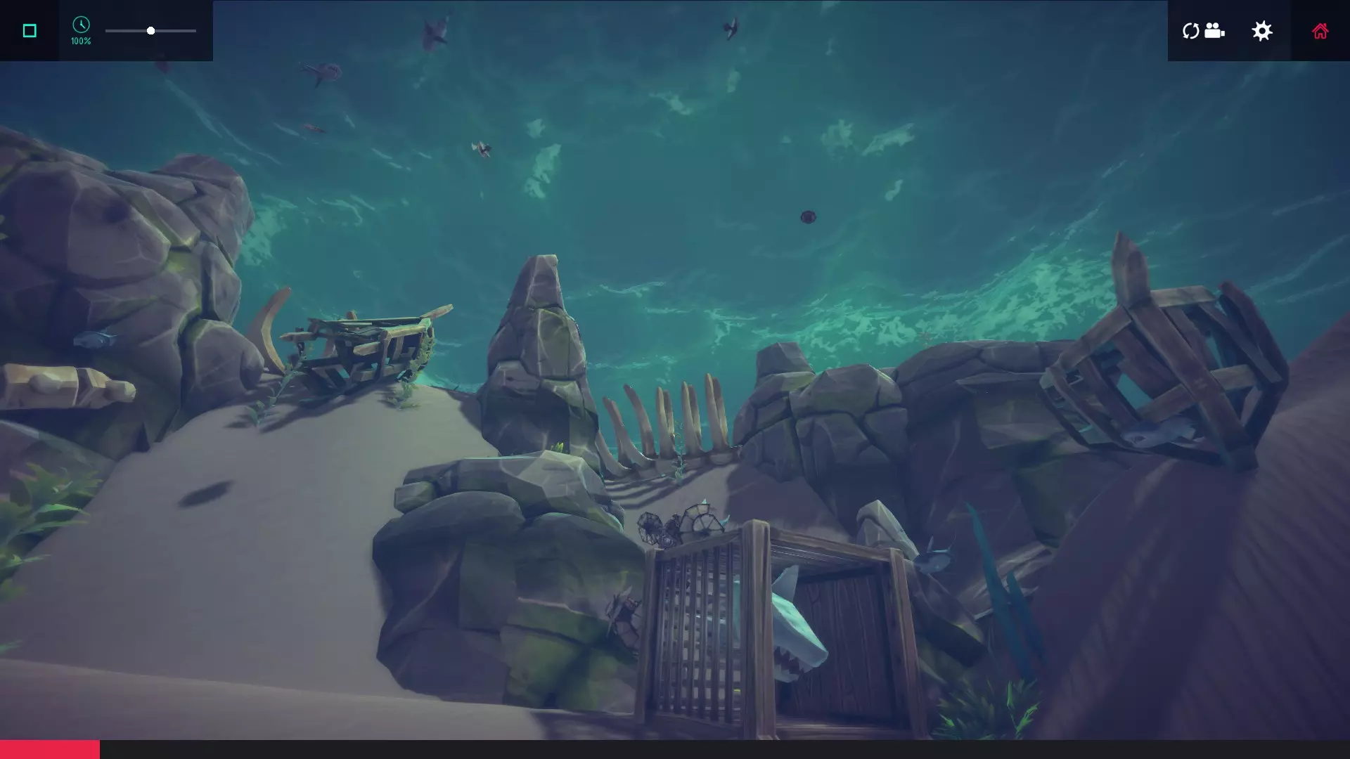 你需要将任意鲨鱼(不只是大鲨鱼)收集或捞进这个笼子里,而且你的机器需要有足够的韧性来承受鲨鱼的攻击。(抱歉截图质量不佳,我的鼠标中键坏了,无法重新分配相机聚焦键)