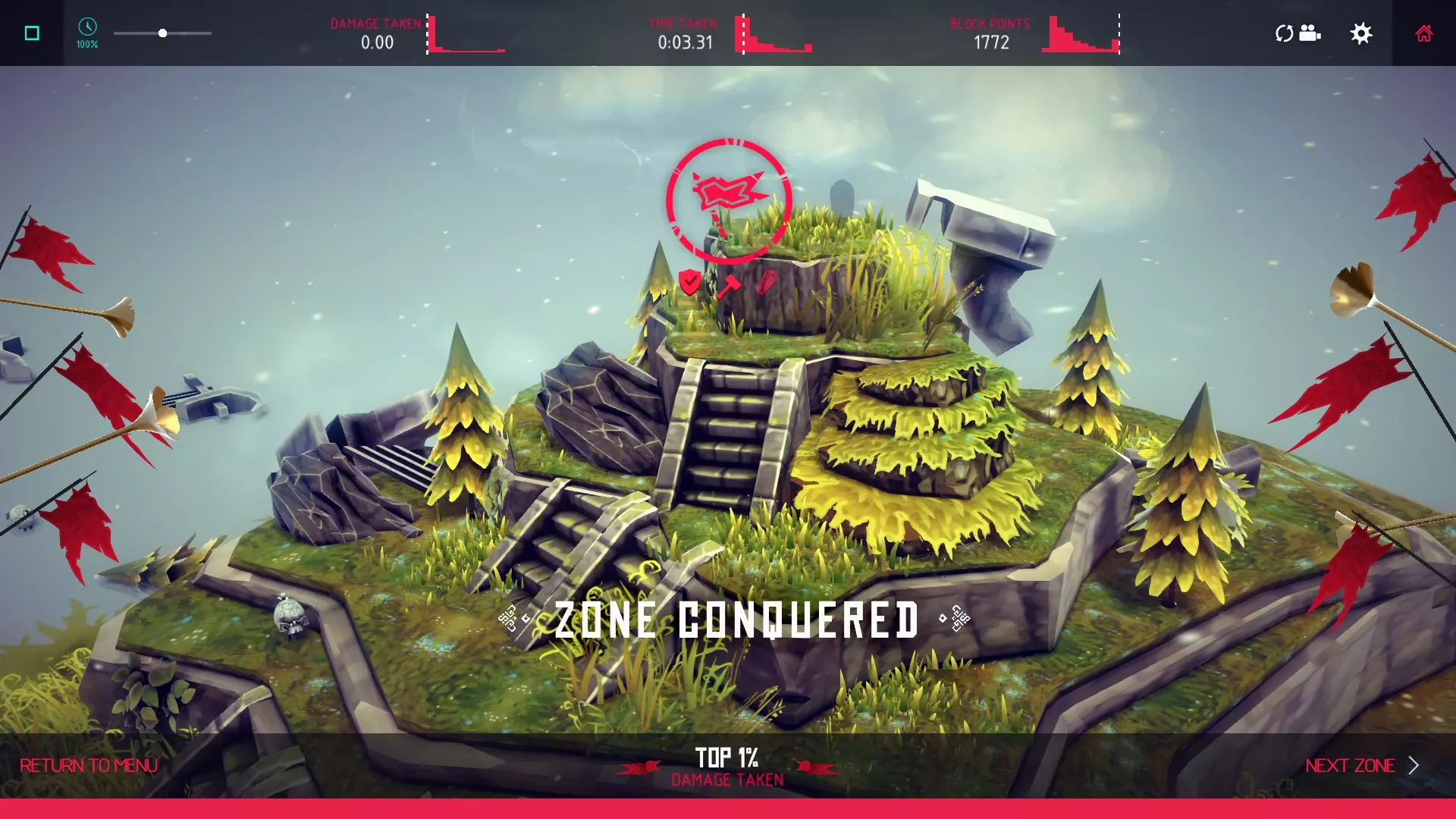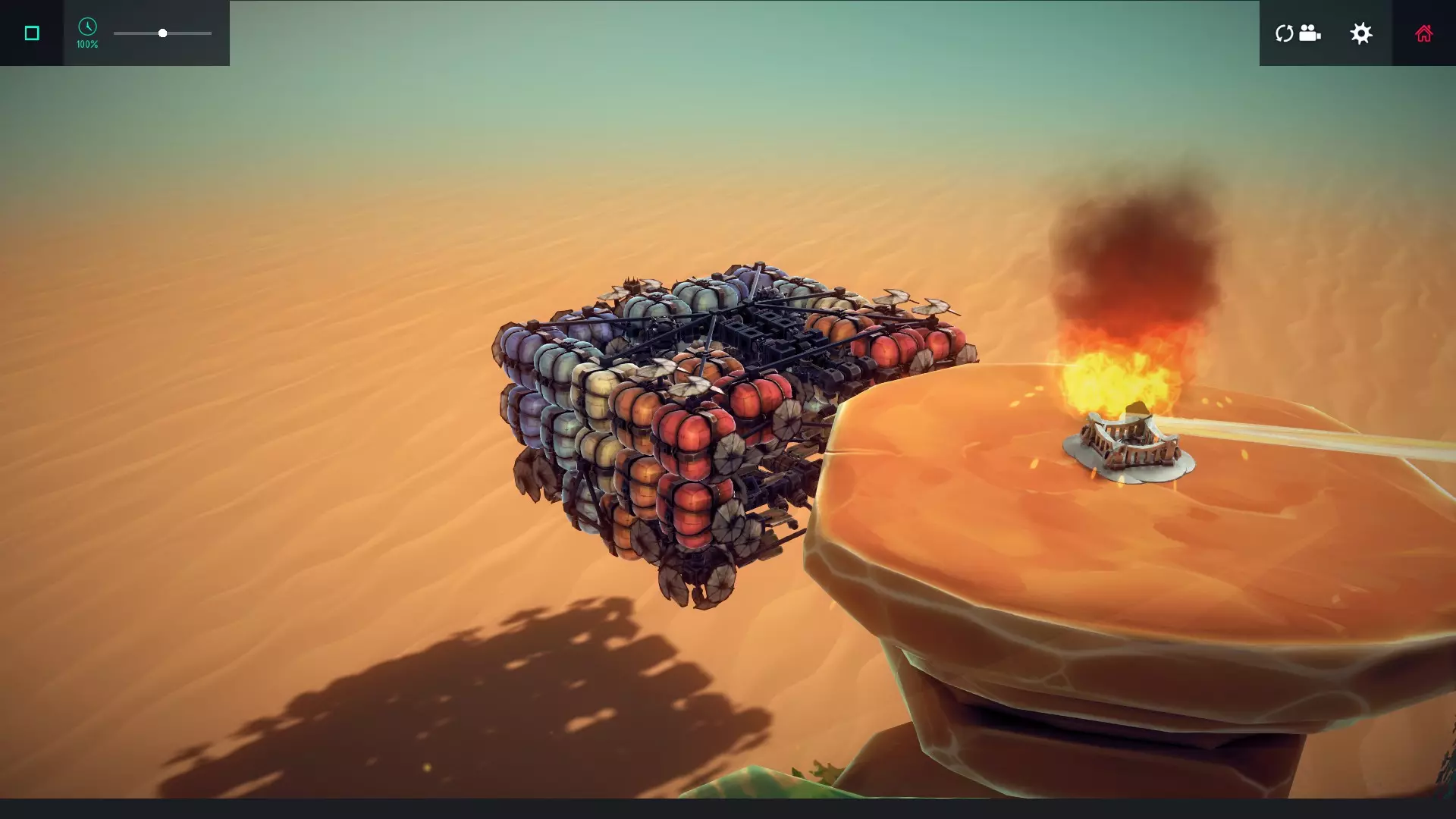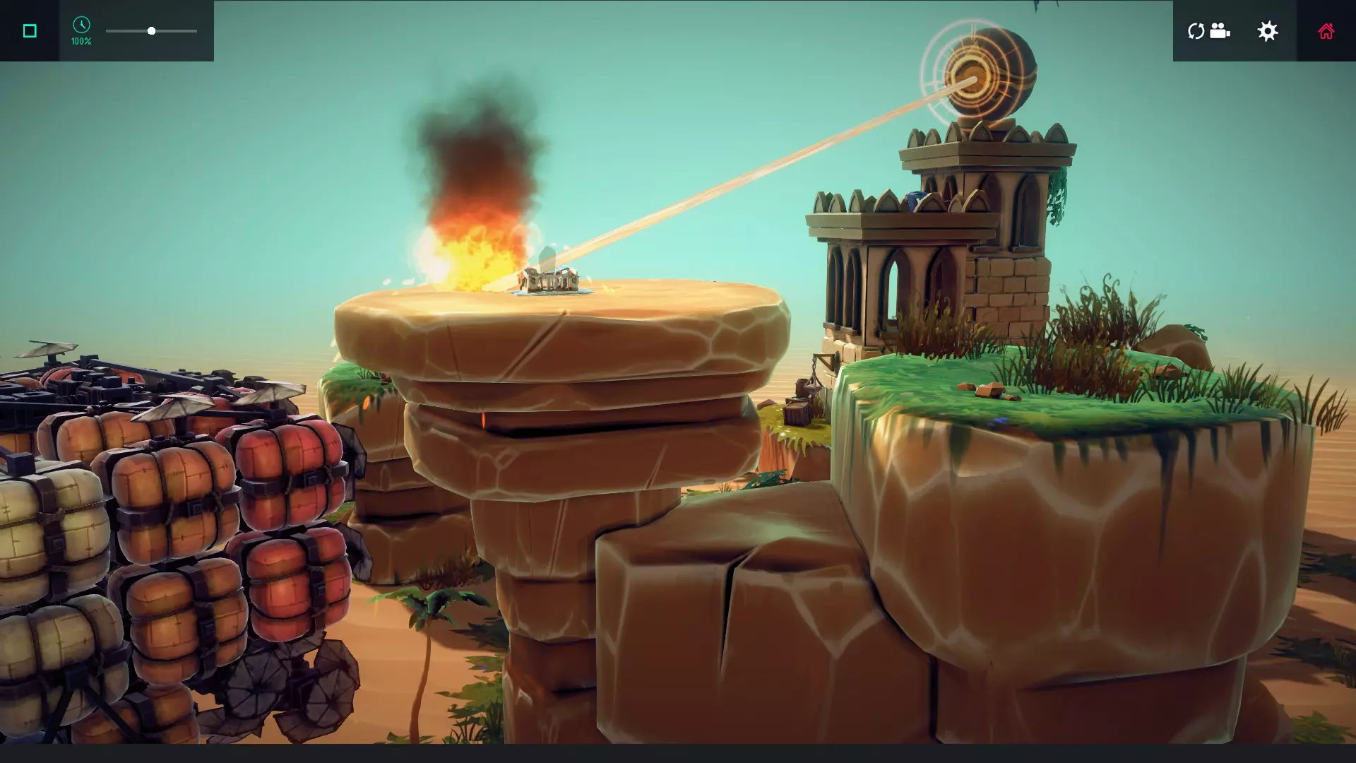 巨石从山上滚下并从斜坡上跃起,但我不确定它是否跳得足够高,也不知道“单位”具体是多少。这只是众多想法中的一个。如果有需求,我可能会在创意工坊分享这个建造方案供大家尝试。不过,我建议大家先自行尝试,毕竟网上还有其他指南可能会教你怎么做。 6/6 – RaiderZone 55 – The Last Stand 如何完成:在该关卡中找到碎片。 我的做法:碎片在城堡主楼里。我不记得是什么条件让它生成——可能是将城堡完全升级,也可能是摧毁里面的金堆。不管怎样,我是在通关后用飞艇底部的绞盘取回它的。