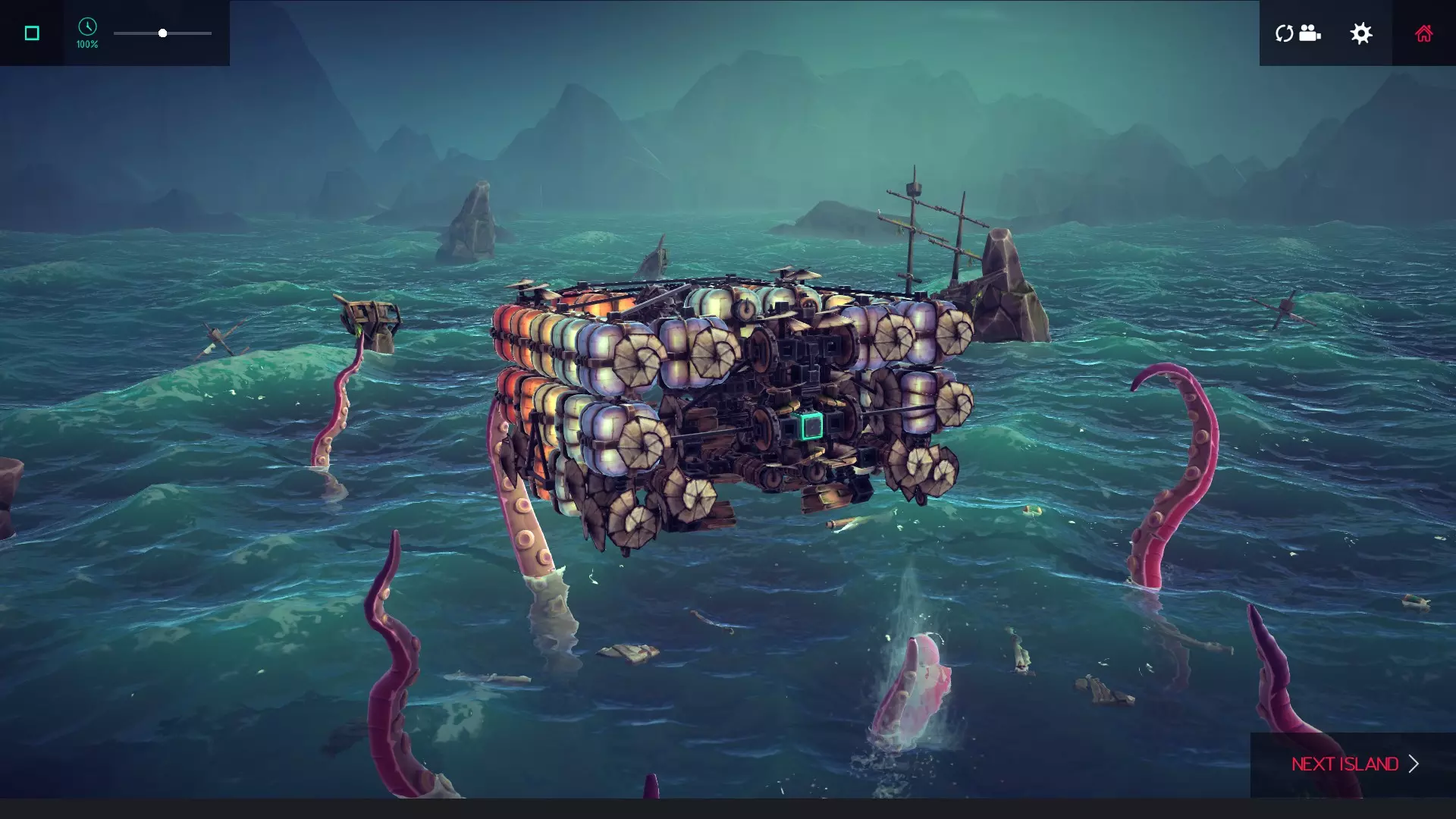 我是怎么做到的:天啊,这可真是有趣。这里涉及到游戏物理机制的一些随机数生成。可以捡起贝壳并把它交给触手怪。我用带机械臂的飞艇把贝壳递给了触手。我的飞艇可以投放一个单独的迷你潜水器,我就是用它来收集碎片的。