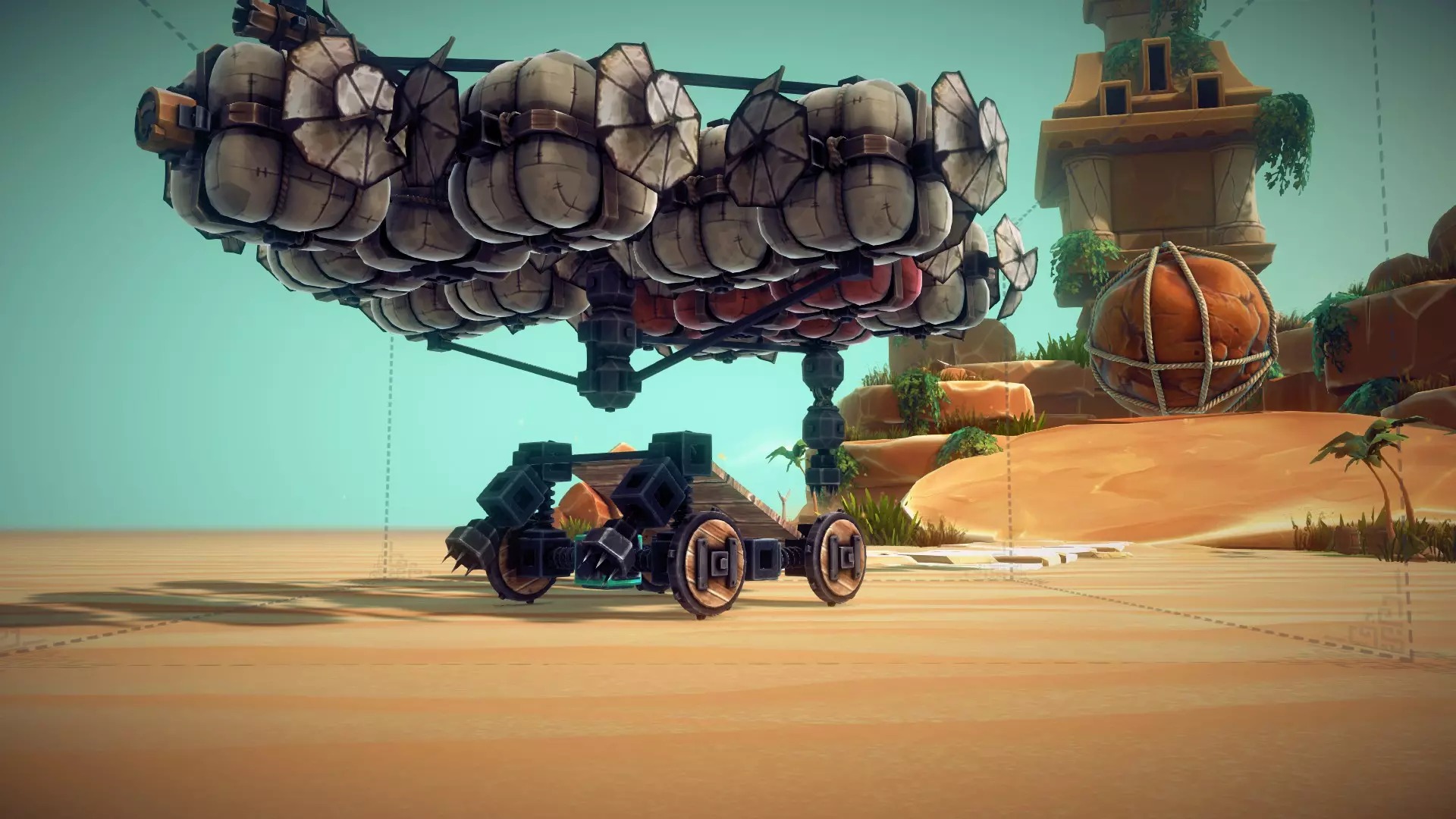 建议:绵羊喜欢聚集在你的装置周围,所以要建造防火且移动缓慢的东西。你知道可以将转向块用作动力轴吗?将多个转向块放在一起可以让它们旋转得更快。 如果你在这方面遇到困难——显然你需要把绵羊赶到你和石头之间。或许可以制作一个被装甲包围的机器,让绵羊无法躲在后面。 4/5 - 上坡苦战 区域11 - 里拉峰 方法:摧毁纪念碑,然后收集碎片。