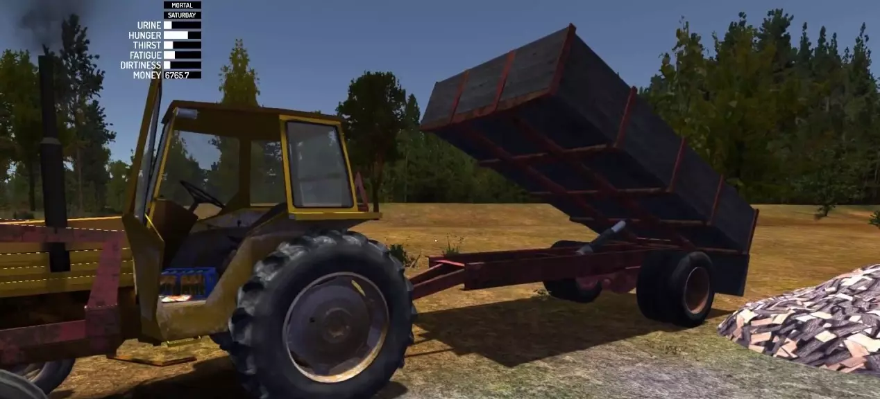 送柴任务 送柴任务非常简单但耗时较长。当你接到电话后,前往你家之后第一个车道旁的小谷仓,你会看到一辆名为【Kekmet】的拖拉机,以及一个可以挂在拖拉机上的拖车。那里还有一个劈柴站。 劈柴步骤:拿起斧头,按默认键F装备。瞄准木头时右键,然后左键点击木柴堆补充劈柴材料(如果劈柴台无法补充材料,可能是因为台上已有木柴块)。将劈好的木头放入拖车,直到完全装满。当木头堆的纹理不再升高但仍能继续放入木头时,就表示拖车已满(这需要一段时间)。然后将拖拉机倒向拖车。希望能成功连接,之后你就可以出发了。只有一户人家订购木柴,你可以通过以下路线到达: 1. 过了火车轨道后的十字路口左转。 2. 在四路交叉口再次左转。 3. 他在右侧的第二栋房子。 拖拉机有低速和高速档位,可通过【默认按键R】切换。而且它慢得... 要从拖车中倾倒木柴,需先点击打开后挡板,然后在座位左侧,紧挨着座位的地方有一个标有【后液压装置】的操纵杆,左键点击该操纵杆,并将拖拉机挂入空挡。接着将手动油门调至最大,拖车就会开始倾倒木柴。如果它没有上升,你可能需要尝试从下方推动它,抬头并按下(默认按键J)伸出推臂。完成这些后,右键点击后部液压按钮两次,然后再次踩油门。拖车应该会开始下降。完成后出去领取你的钱,大约是3200马克。