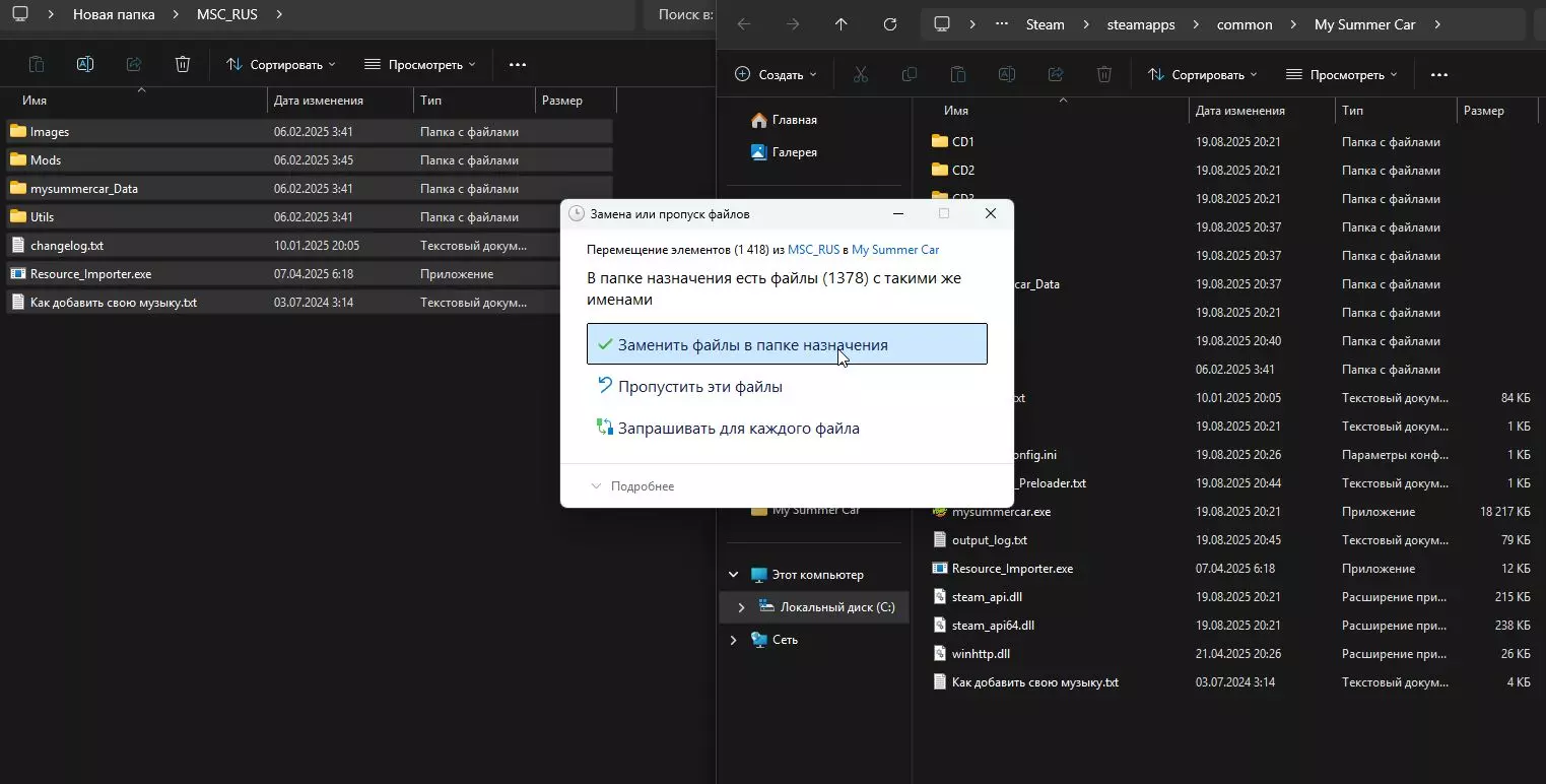 2. 将zip文件解压到任意方便的文件夹,然后放入游戏根目录:完整路径 - C: Program Files (x86) Steam steamapps common 我的夏季汽车
