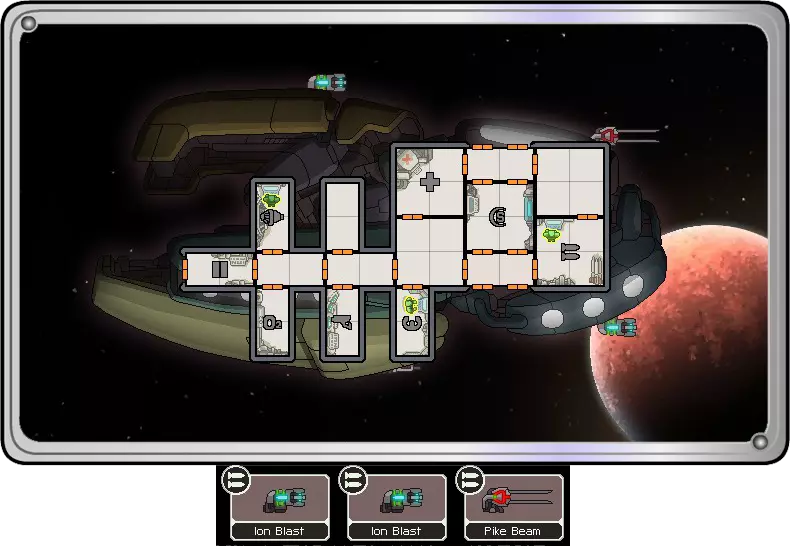 又是他们! 和A型舰很像——你有3名佐尔坦船员,这带来了相同的优势和问题。反应堆依然很糟糕(所以三倍动力加成实际上并不像看起来那么厉害),而维修/登船船员对你这些脆弱的家伙来说非常重要。要小心接受有风险的文本事件(比如巨型蜘蛛),因为过早失去一名船员也会让你失去至关重要的动力!